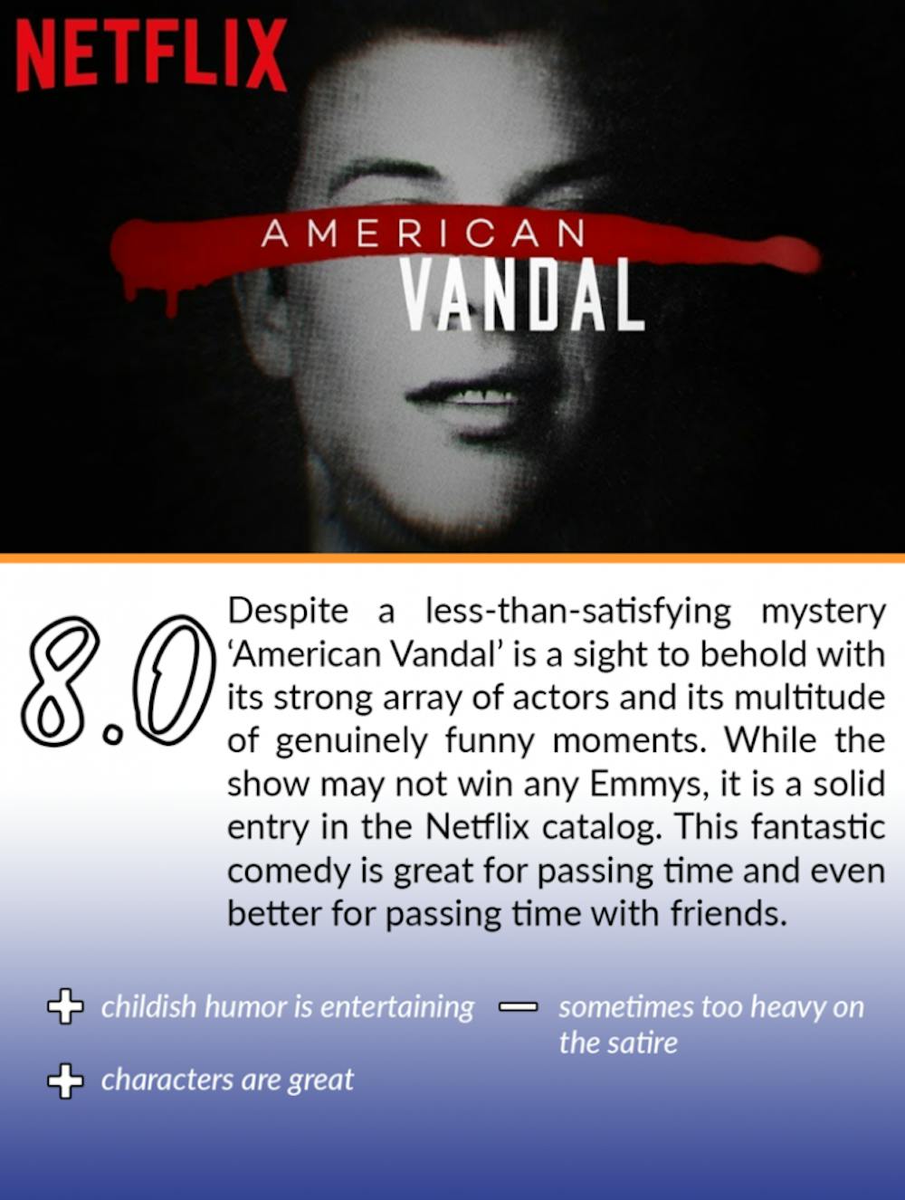 The initial reveal trailer for Netflix’s American Vandal showed great production value along with cooperation from Cracked and Funny or Die contributors. It had the potential to be amazing or a gigantic dumpster fire of massive proportions. Could this satirical mockumentary spin a cohesive story while also finding interesting ways to make jokes about penises?