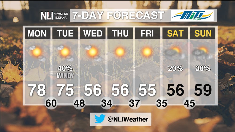 7-Day Forecast: Warm temperatures stick around Monday and Tuesday, but a cold front moves through Tuesday night making for fall-like temperatures for the rest of the week.
