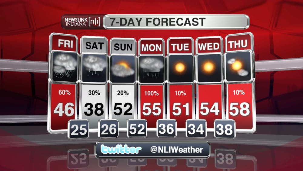 Cooler temperatures today with rain and possibly snow this evening. Dry and cool conditions on Saturday. Warmer temperatures will return on Sunday! ©2016 NewsLink Indiana, Ball State University.