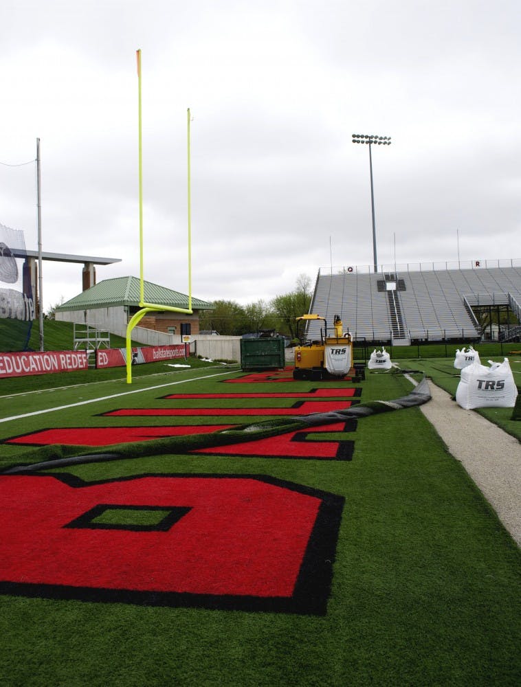 Today marked the beginning of turf replacement inside Scheumann Stadium, following the conclusion of the team's practice schedule on April 18. The current turf surface has been in use for eight years, but is showing age due to daily use and weather.