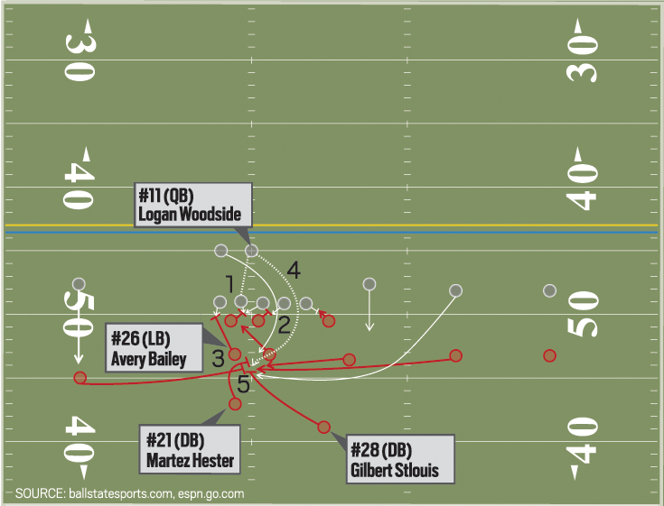 The Ball State defense needed a tornado siren to slow down the Toledo offense Saturday night and Sunday morning.13 offensive plays in for the Rockets, and the Cardinals were trying to figure out how they had already given up two rushing touchdowns to quarterback Logan Woodside, who had never rushed for a touchdown in his collegiate career.The first came before a two hour and 42 minute weather delay.