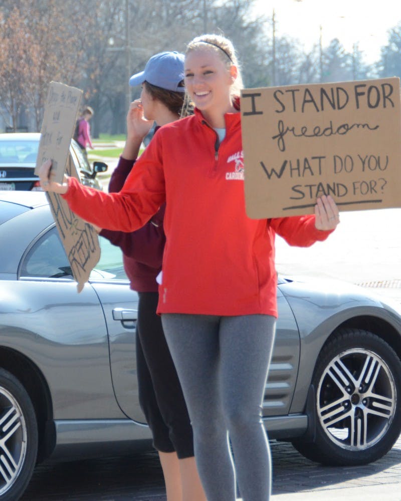 Sisters Jenna and Erin Kessler woke up on Friday to get honked at.Jenna Kessler, a senior nursing major, and Erin Kessler, a freshman nursing major, joined members of the International Justice Mission to take a stand against human trafficking and modern slavery.The group is standing for 27 hours in honor of the estimated 27 million slaves in the world.