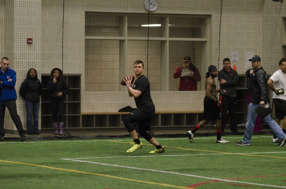 Ball State hosted NFL scouts Thursday morning for its pro day at the turf field in the Student Recreation and Wellness Center watching former Ball State football players work out in preparation for the NFL Draft in May.