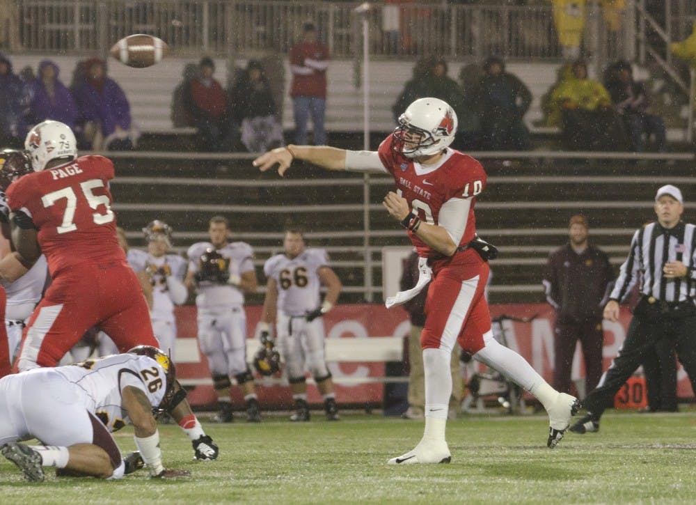 On a drive early in the second quarter, Ball State faced a 2nd and 6 at Central Michigan University’s 30-yard line. Out of the shotgun, senior quarterback Keith Wenning calmly looked left at senior wide receiver Jamill Smith. After a second’s pause, Wenning threw to Smith, who had broken free of the defense and was wide open at the 10-yard line.