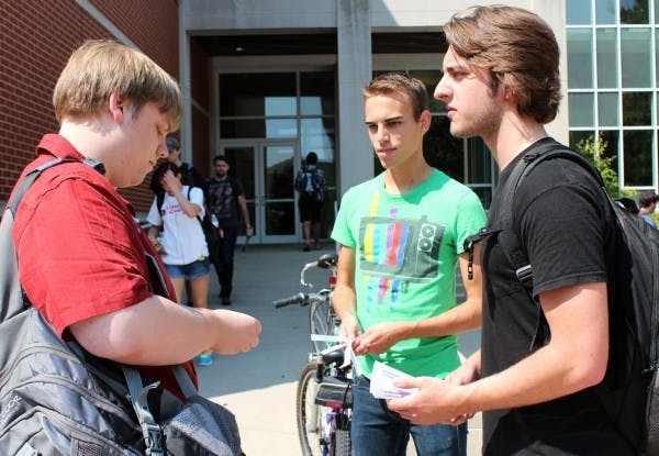 The Atrium became the site of a small demonstration Thursday afternoon when a group of Ball State students gathered with the goal of further educating their classmates about the LGBTQ movement and its ties to the Chick-fil-A controversy.