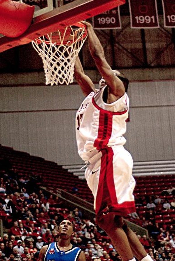 Chris Ames is known for bringing his energy to the court. He is not known for his scoring. In fact, earlier this season coach Ronny Thompson asked Ames if he could hit water if he threw the ball over the side of a boat while floating in the ocean. Ames responded by leading the team in shooting percentage, making almost 70 percent of his shots for the season.