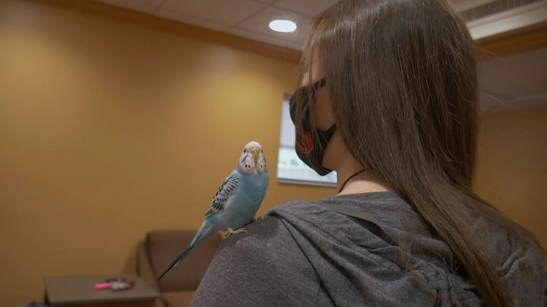 In the halls of the Woodworth Complex at Ball State University, you may see some regular sites, but it's only on a rare occasion you get to see a little fellow with two legs, wings and a beak.