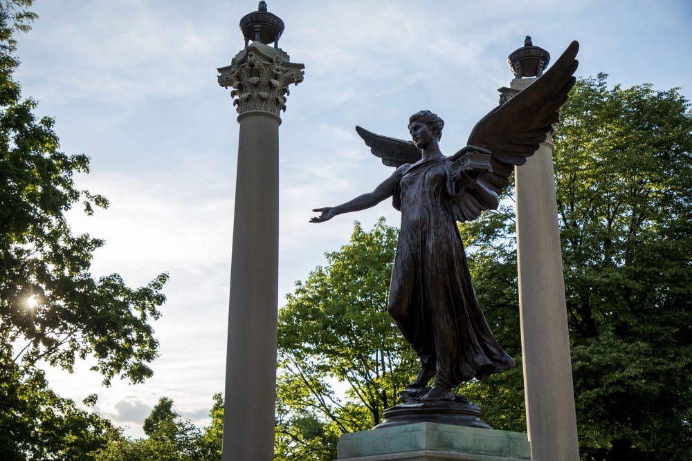 The Beneficence statue, or Benny to most students, is located on the south side of campus, just west of the Administration Building.
