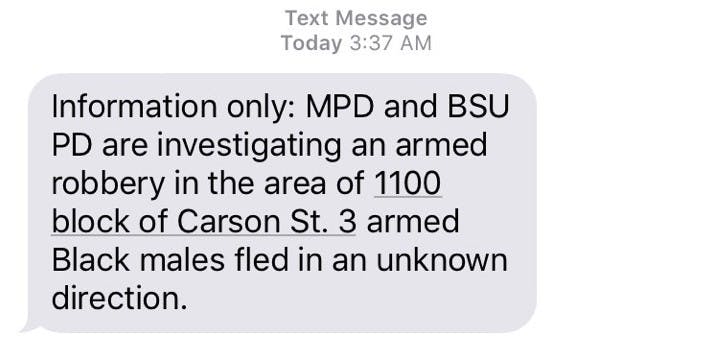 Students woke up Wednesday morning to texts of an armed robbery near campus from the university emergency alert system.