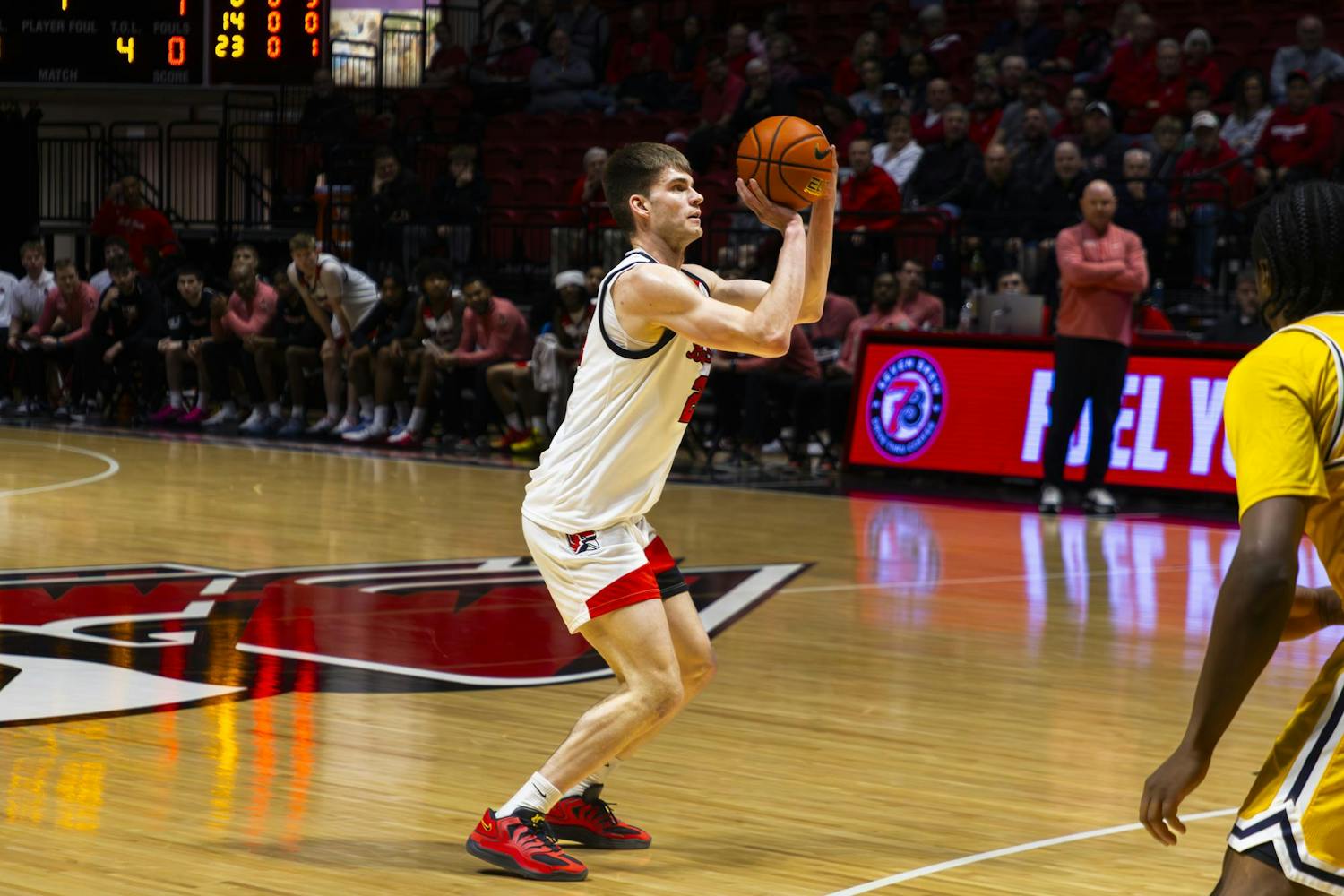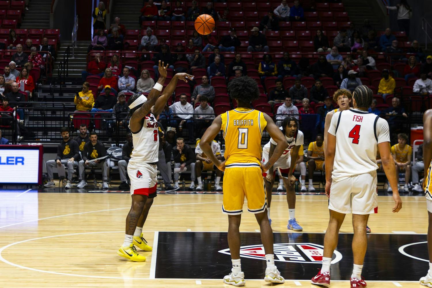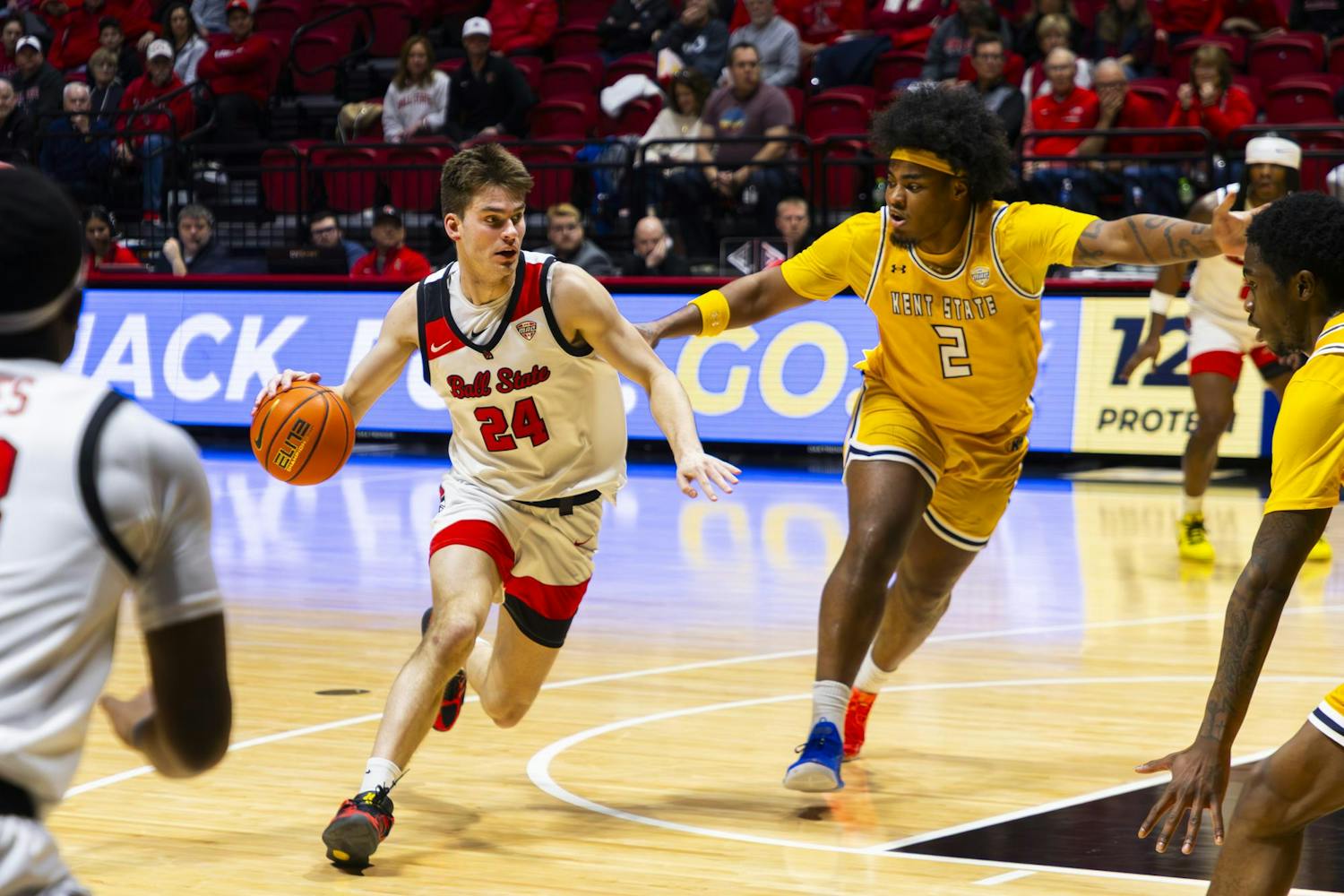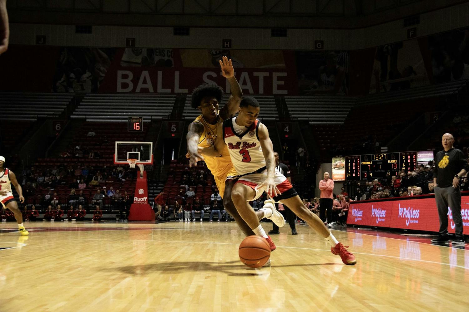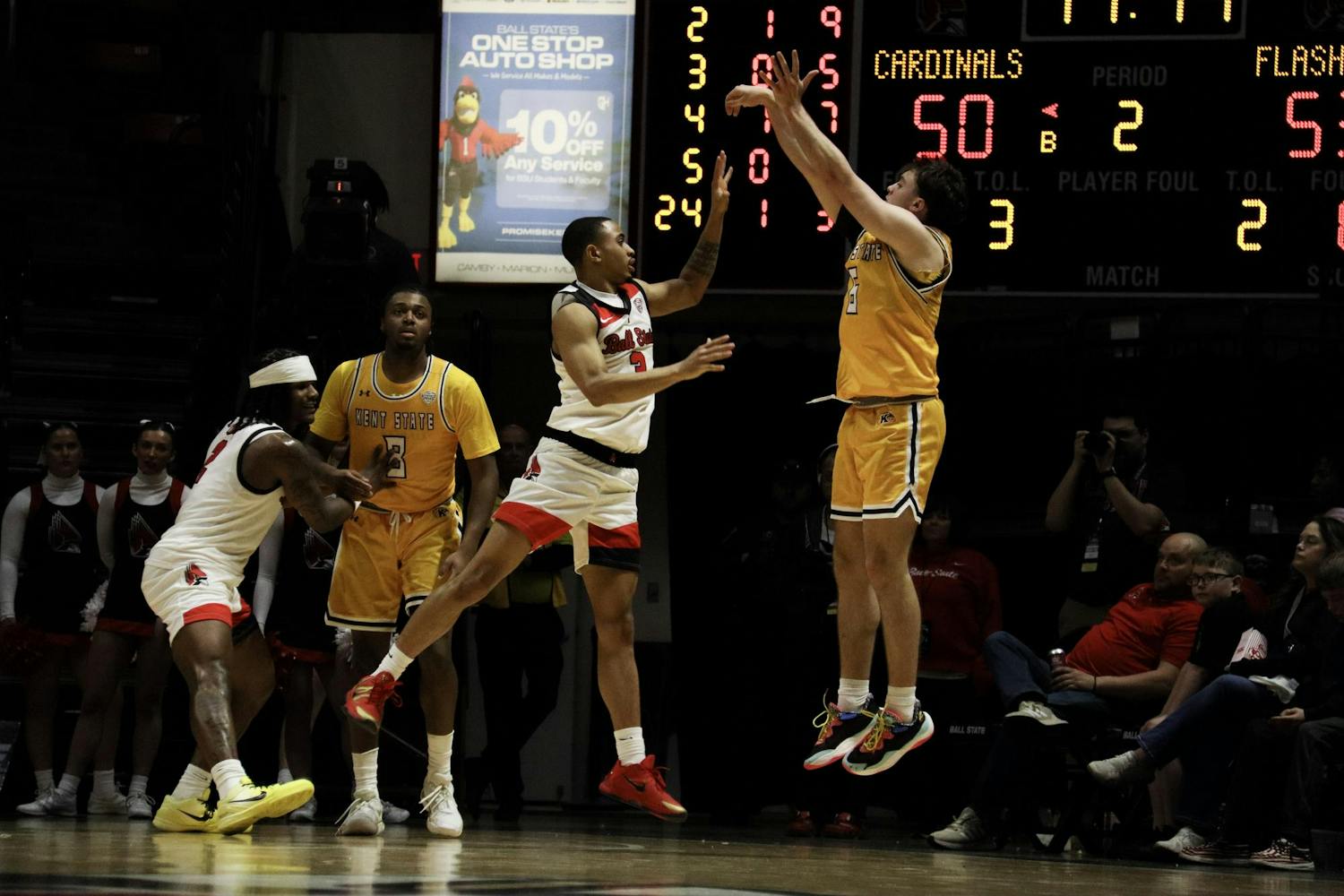 Ball State Men's Basketball loses vs. Kent State on Feb. 14 in Worthen Arena. The game concluded with a score of 68-75.