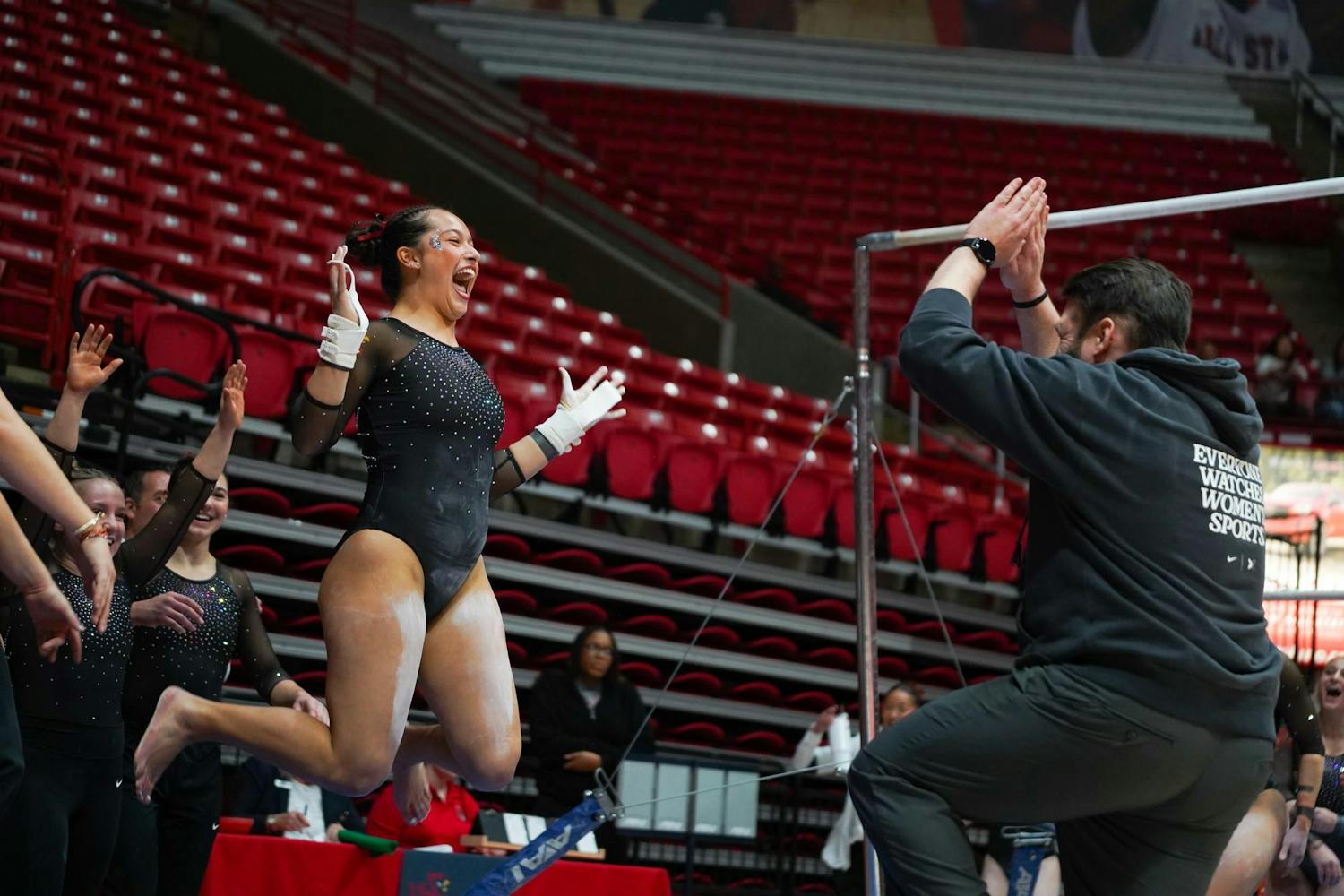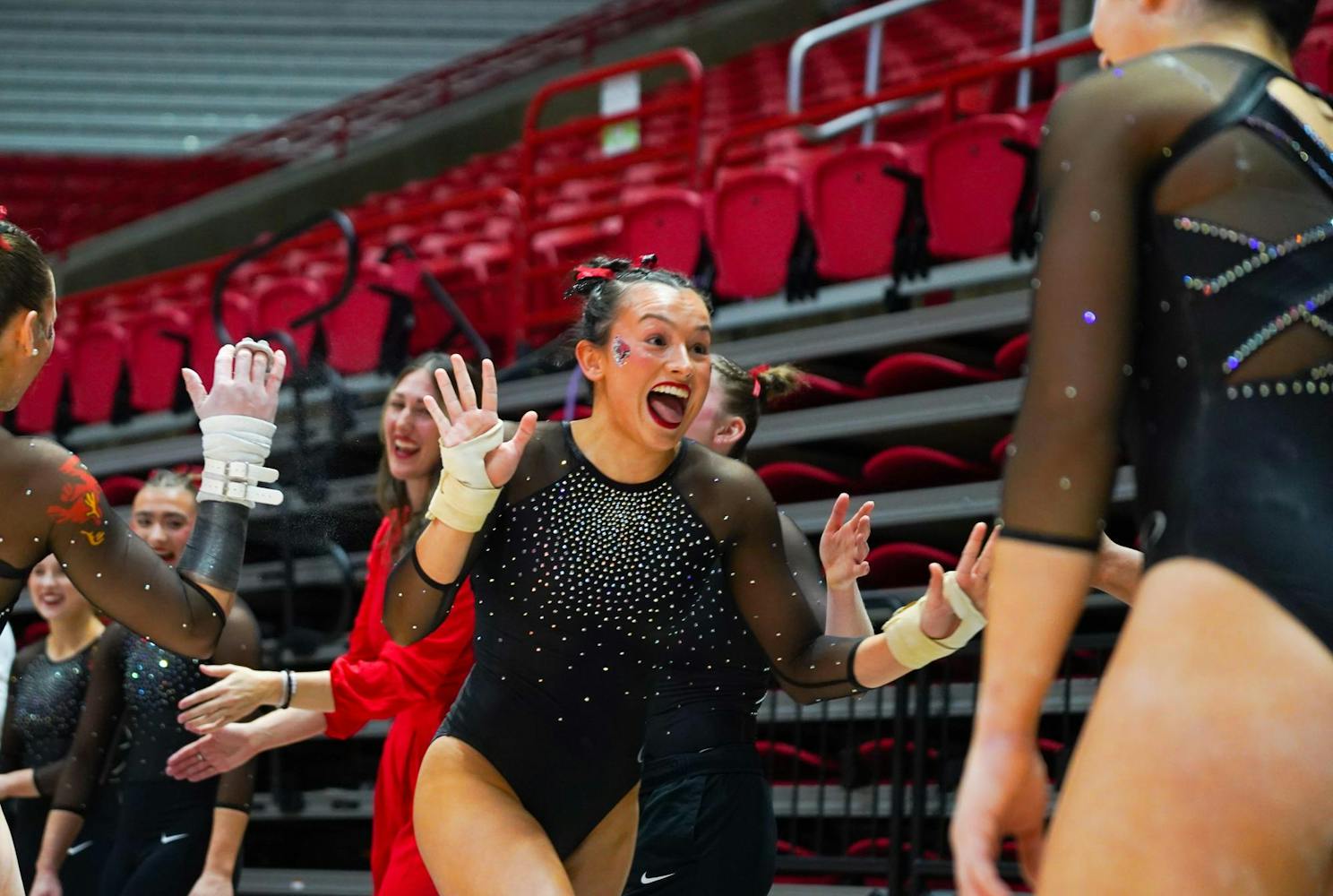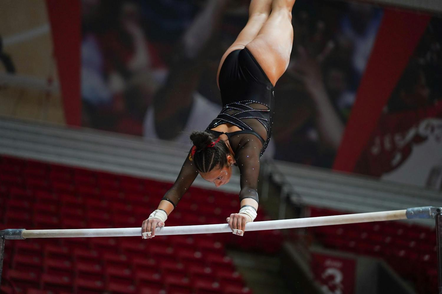 Ball State Gymnastics Team won against Eastern Michigan with a score of 195.025 vs 194.125 on Feb. 12 in Worthen Arena.