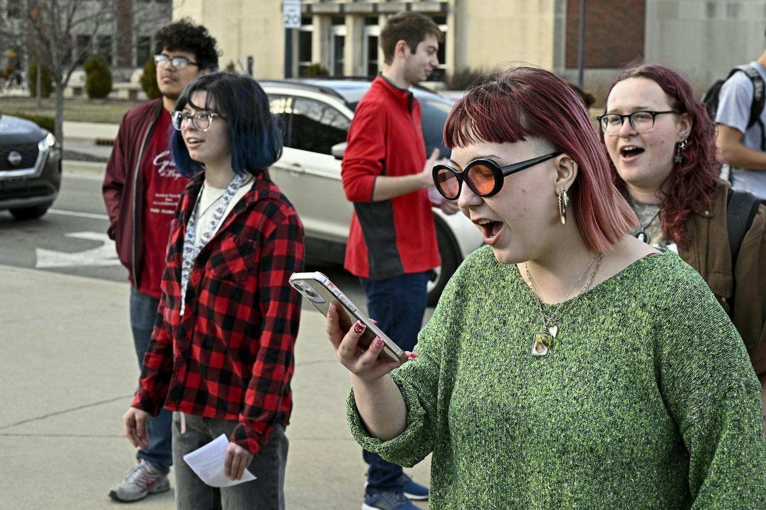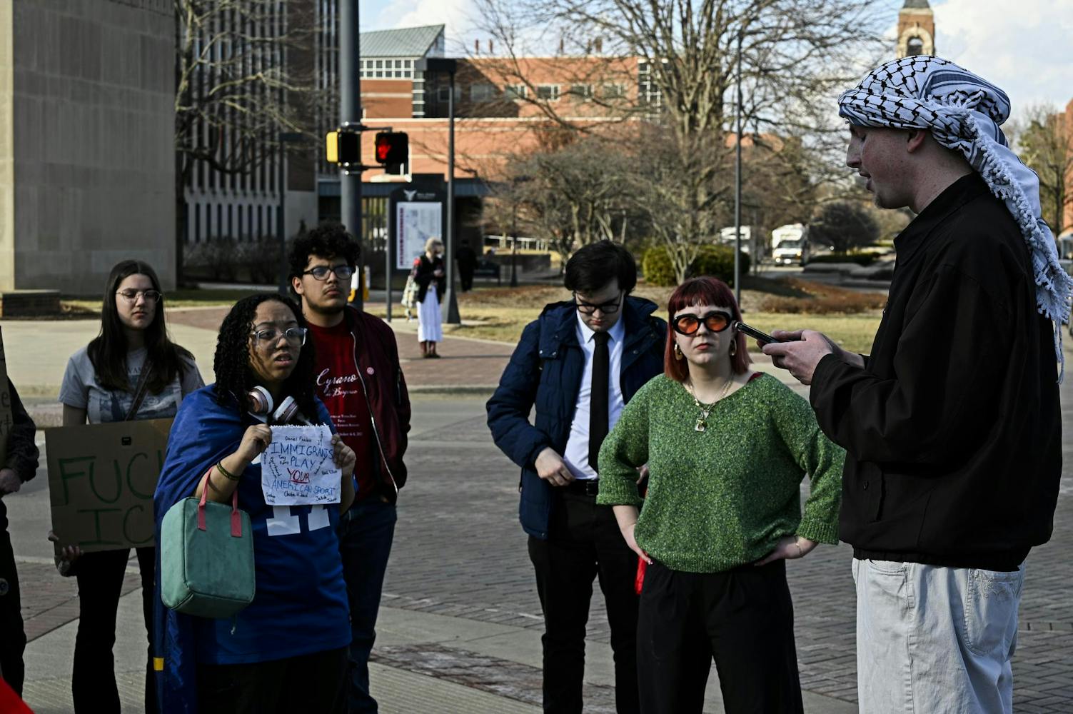 Ball State students gathered at the campus Scramble Light Feb. 17 in support of students facing disciplinary action from university administration.