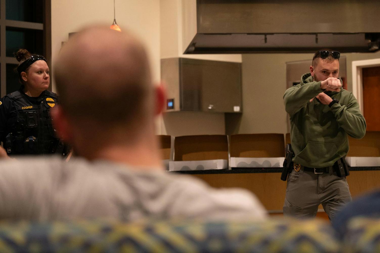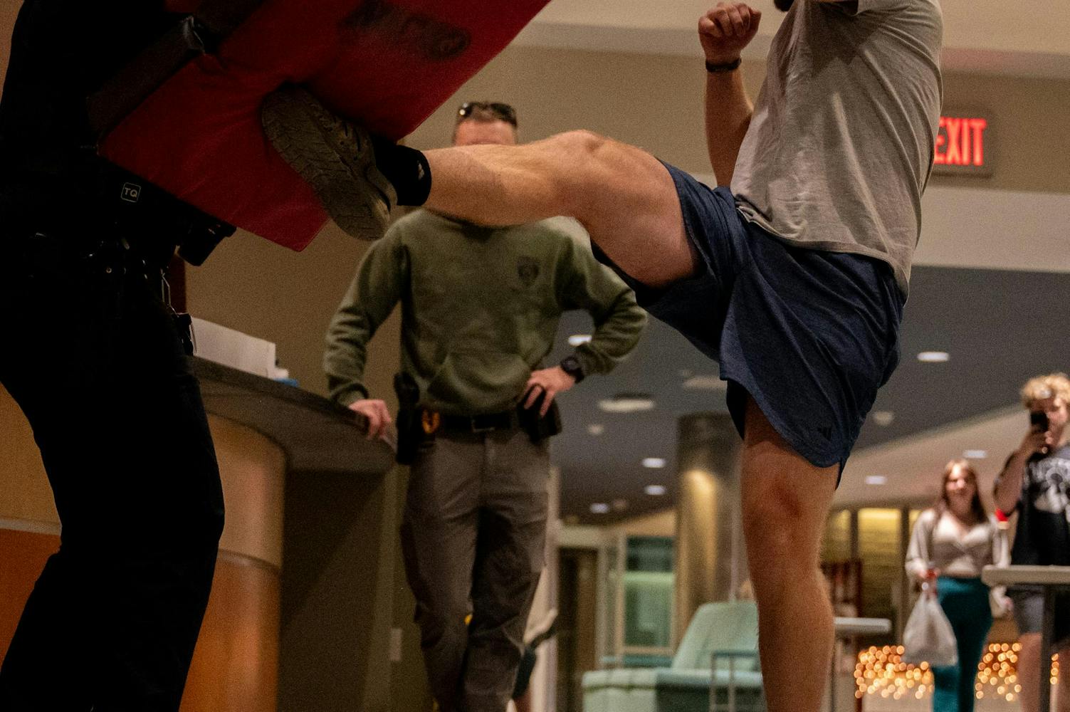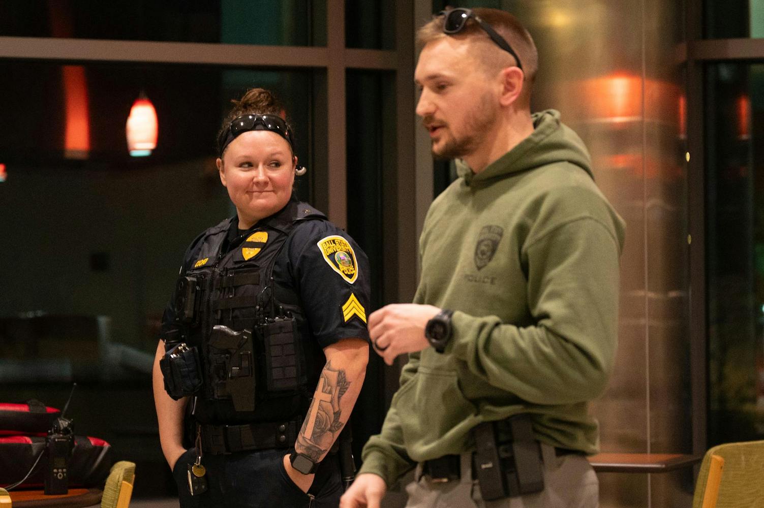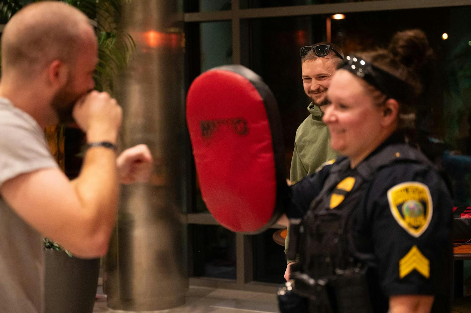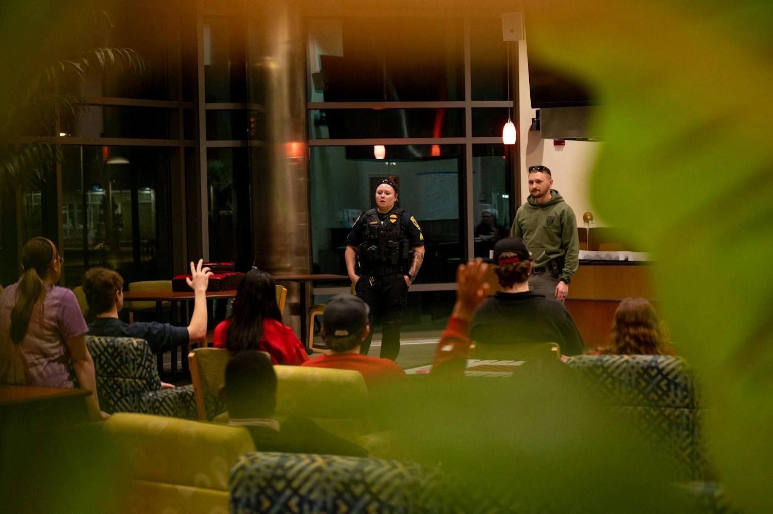 Ball State Residence Hall Botsford/Swinford hosts Self-Defense Night with UPD Sergeants Sami Cooper and Brock Bevans from 6:30-8:00 p.m. Feb. 18 in the Botsford/Swinford Hall Lobby. Self-Defense Night provided students with safety resources, self-defense tips, and free food for all attendees.