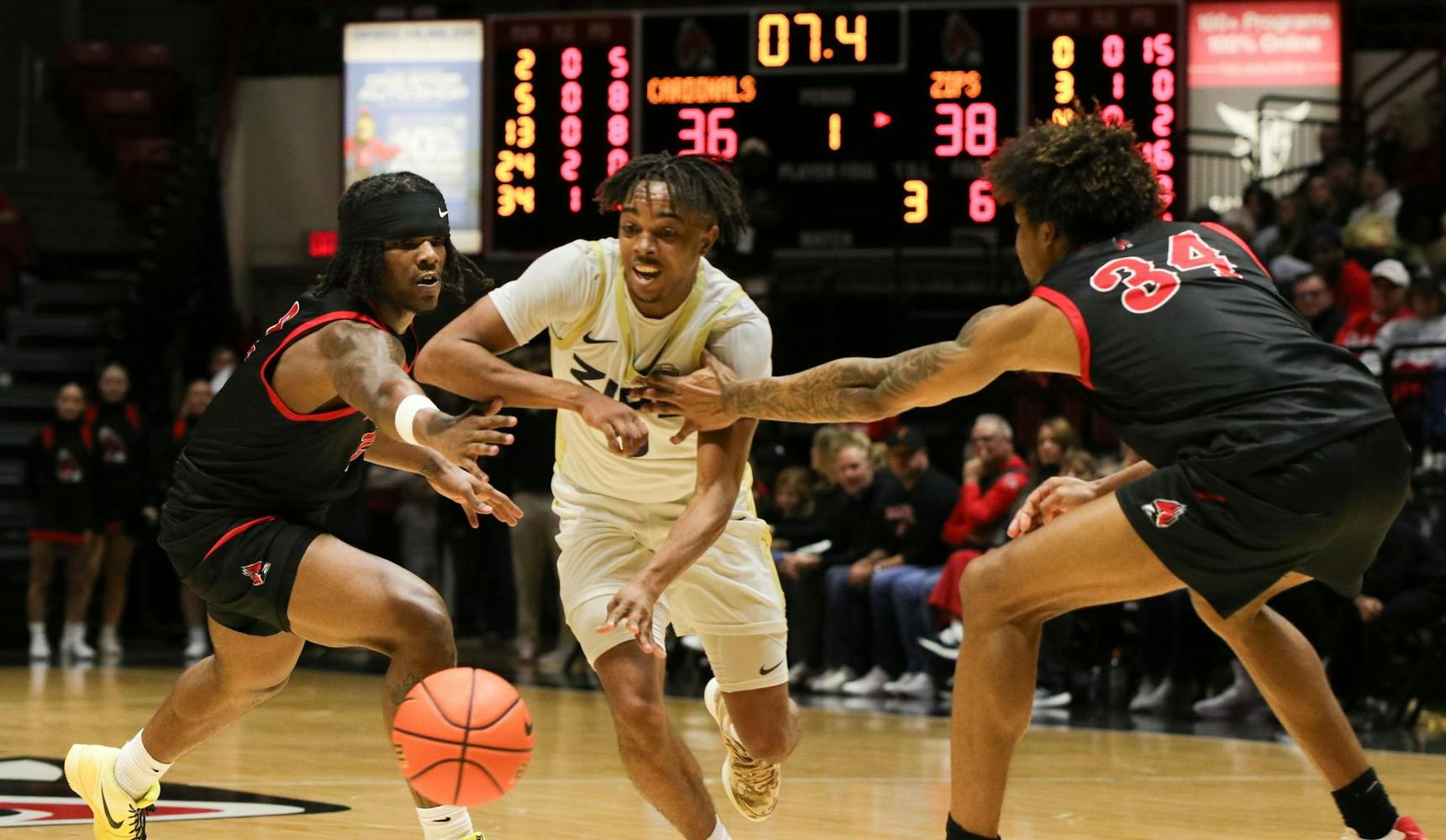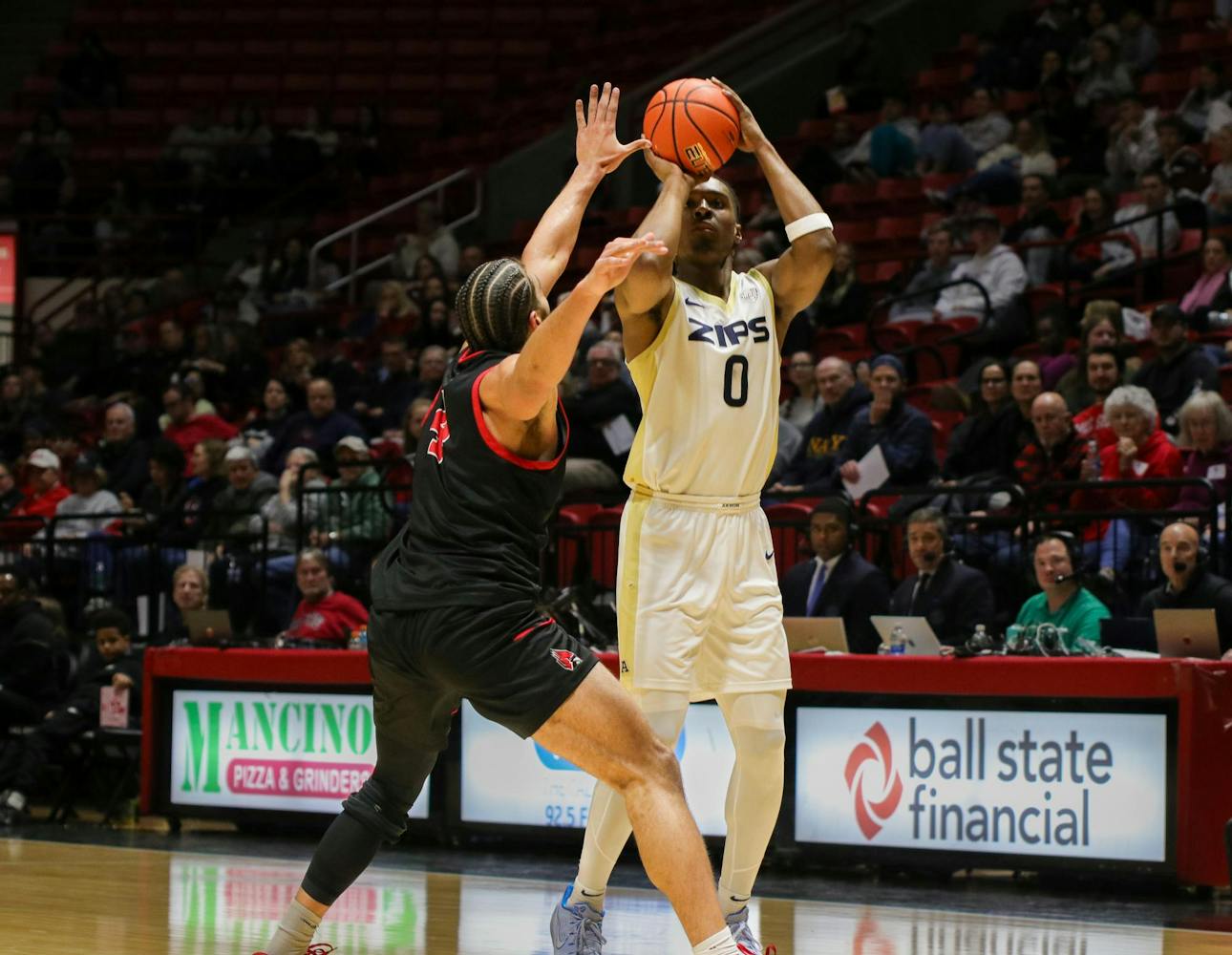 Ball State had eight first half threes and only trailed by four points at halftime. The Cardinals then only trailed the Zips by six points with 13:40 to go in the second half, but Akron responded in a big way.