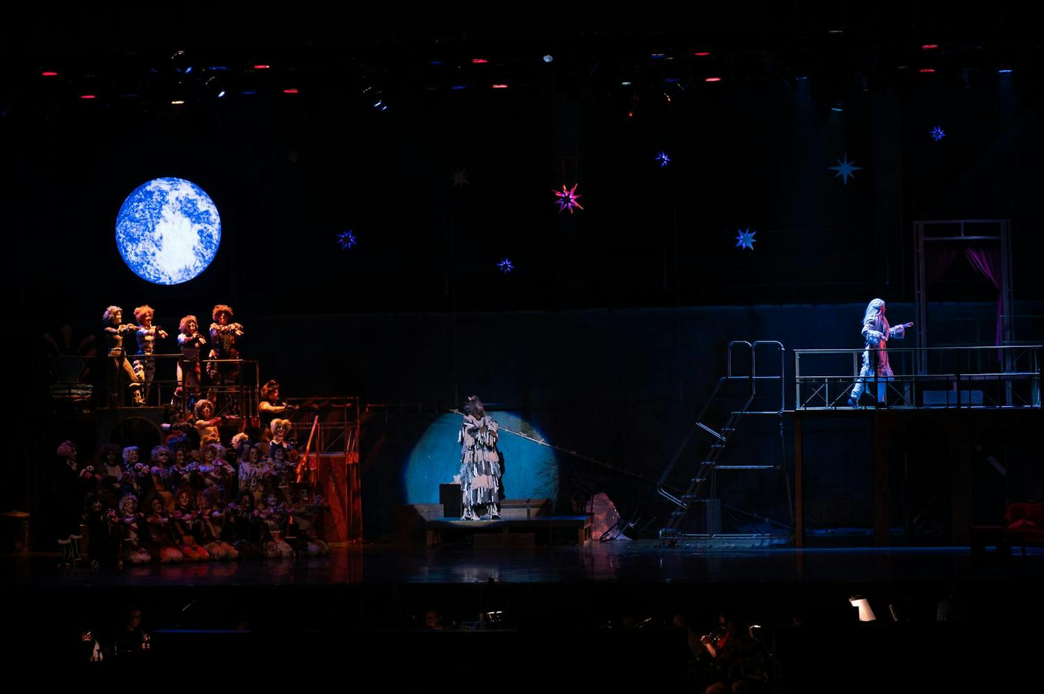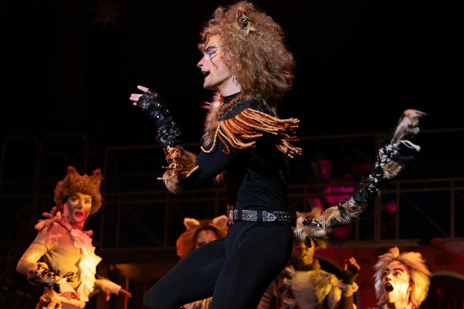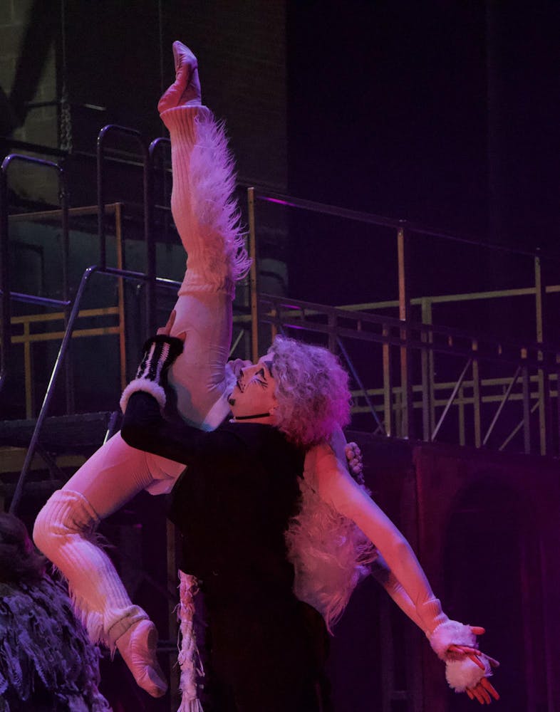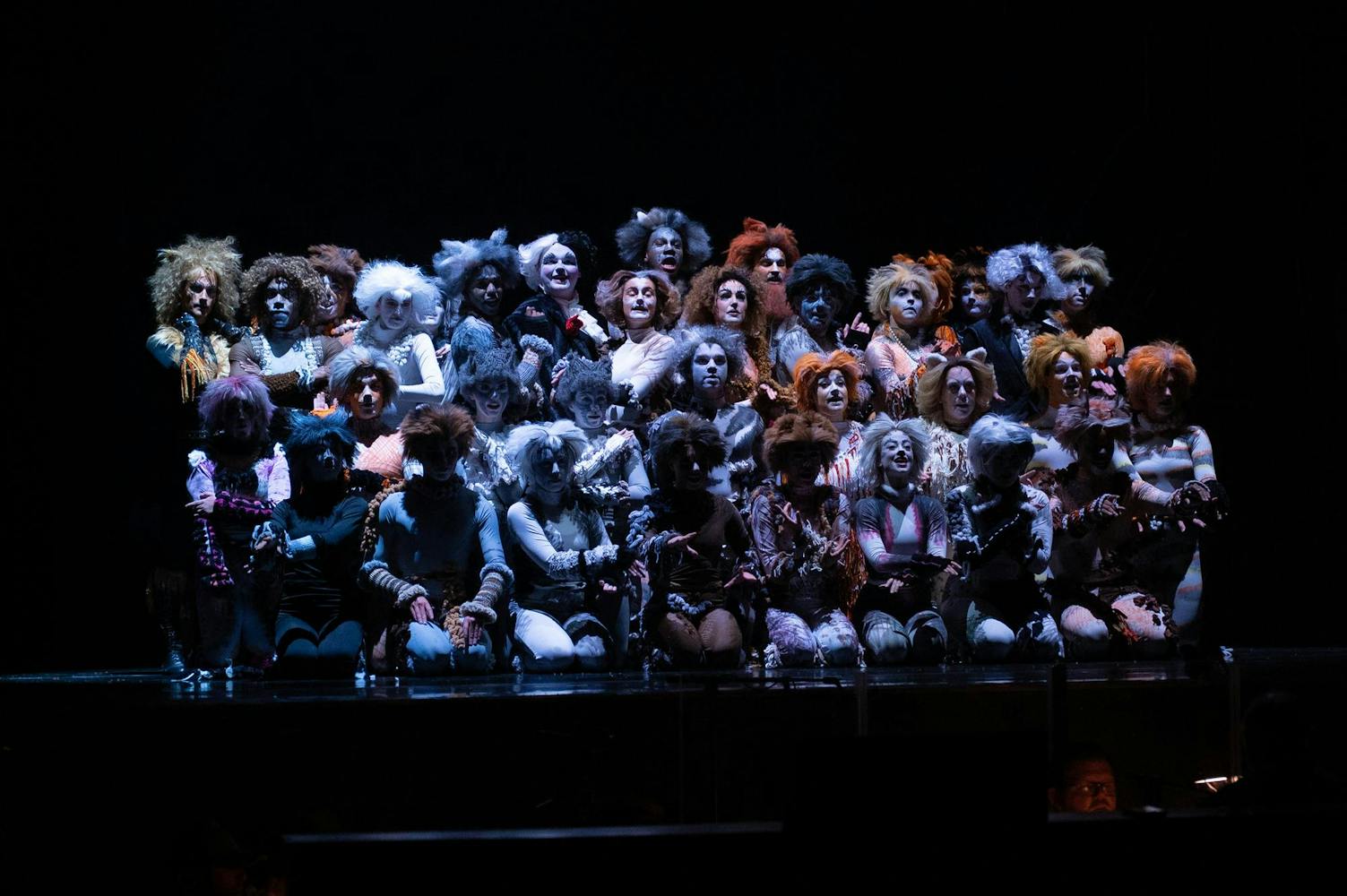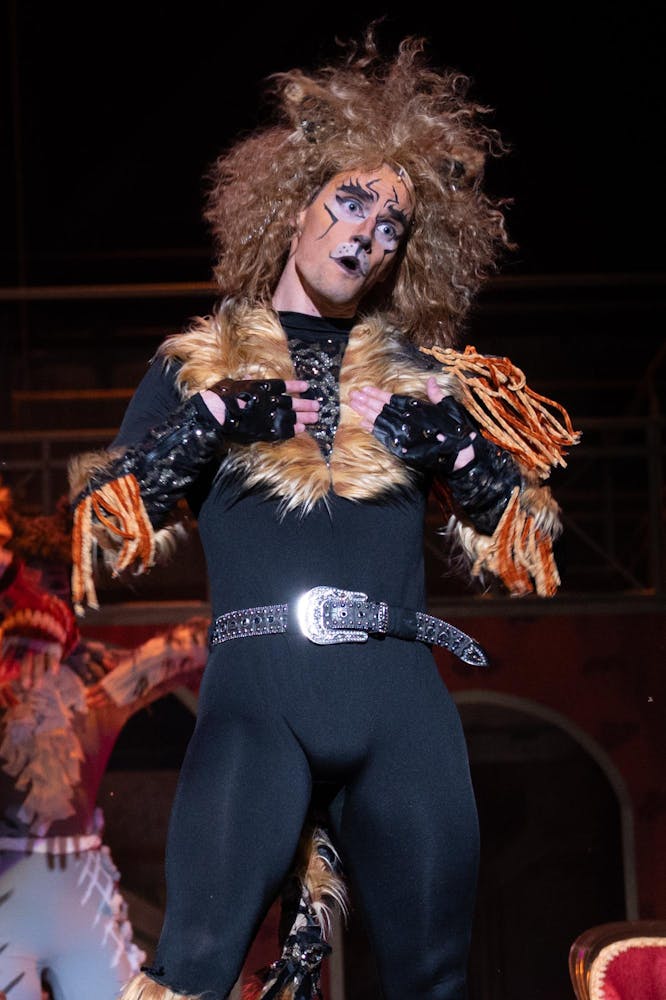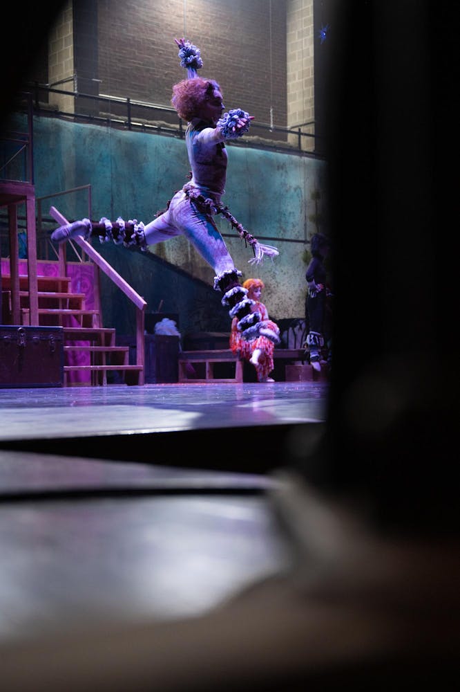 Ball State Department of Theatre and Dance performers, pit musicians, and crew members practice during their dress rehearsal on March 18 for their opening night in Emens Auditorium. This was the first dress rehearsal where the performers were in full costume, makeup, and wigs before their opening night. The CATS musical will run from Friday, March 20 to Sunday, March 22. Ball State students can reserve tickets for the production online or by visiting the Emens Auditorium Box Office.