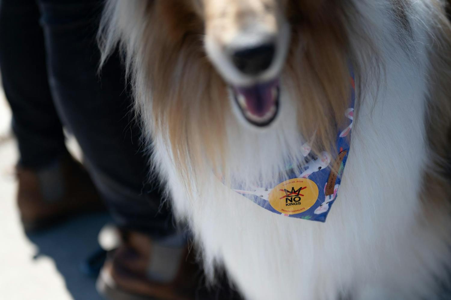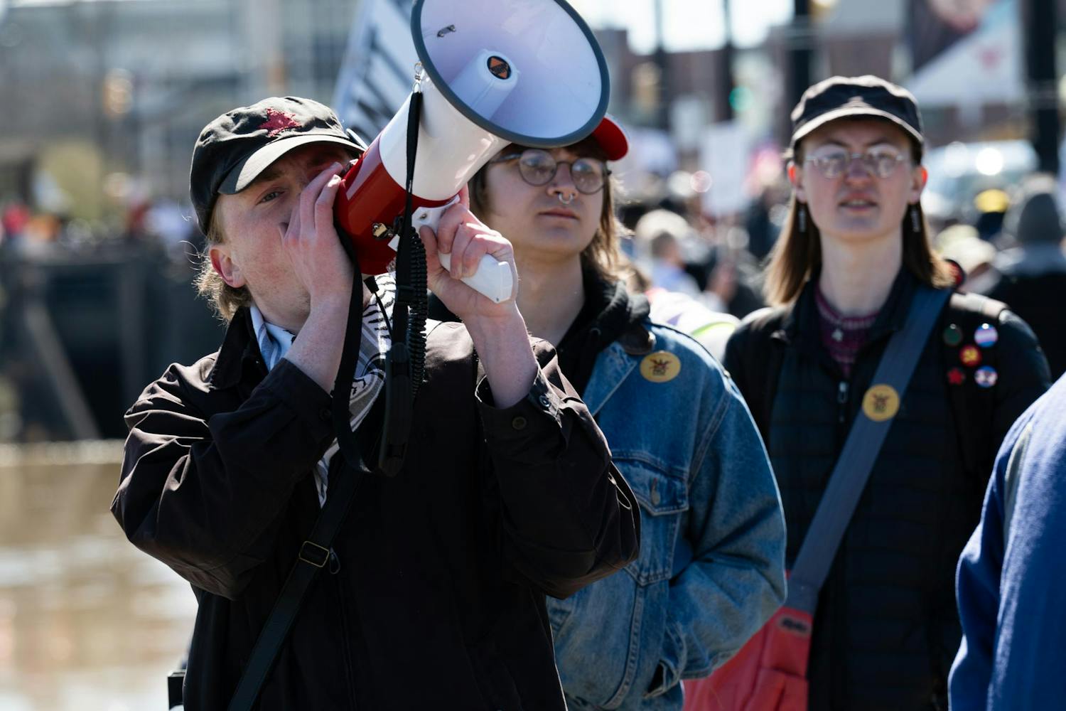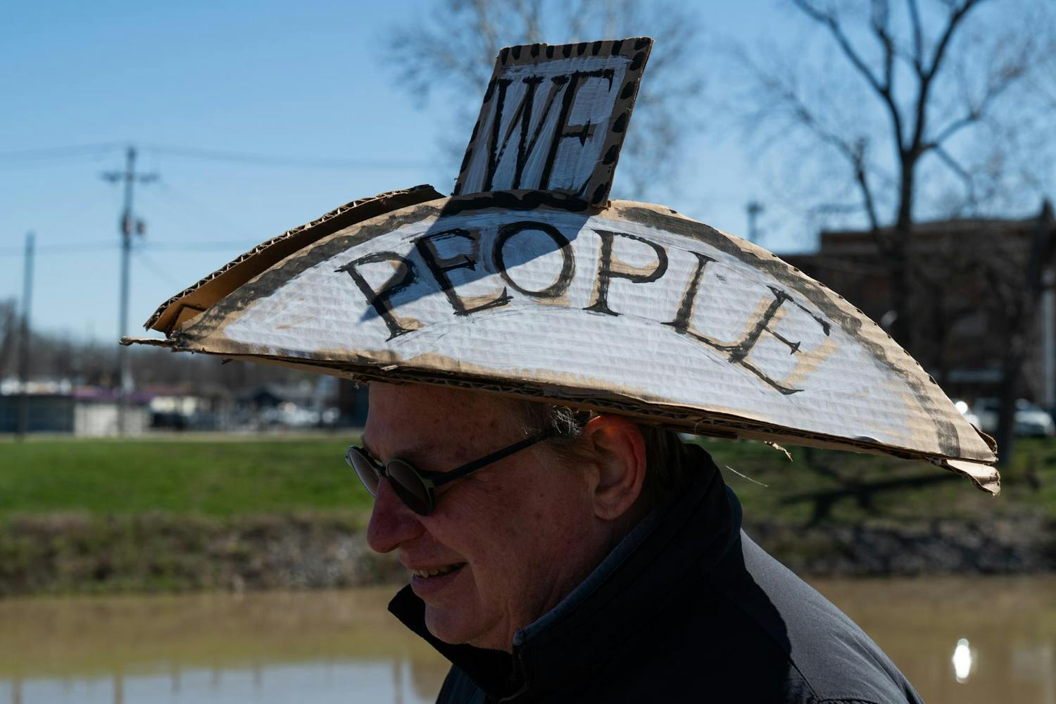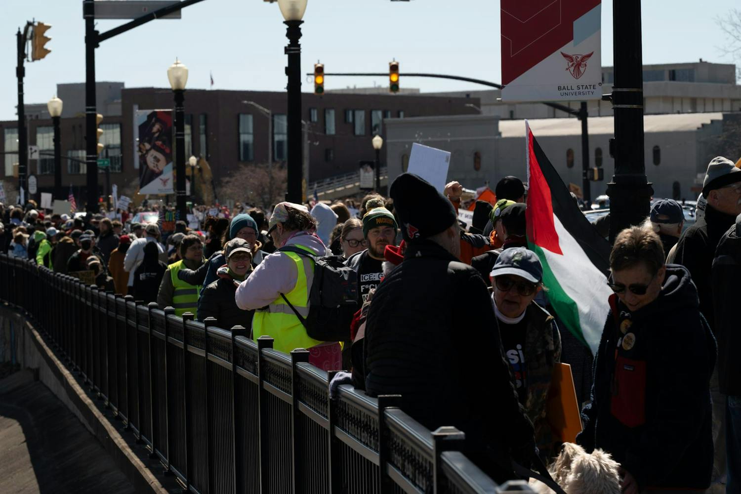 Protesters gathered on the Fallen Heroes Memorial Bridge March 28 for a 'No Kings' protest against the Trump Administration's policies.