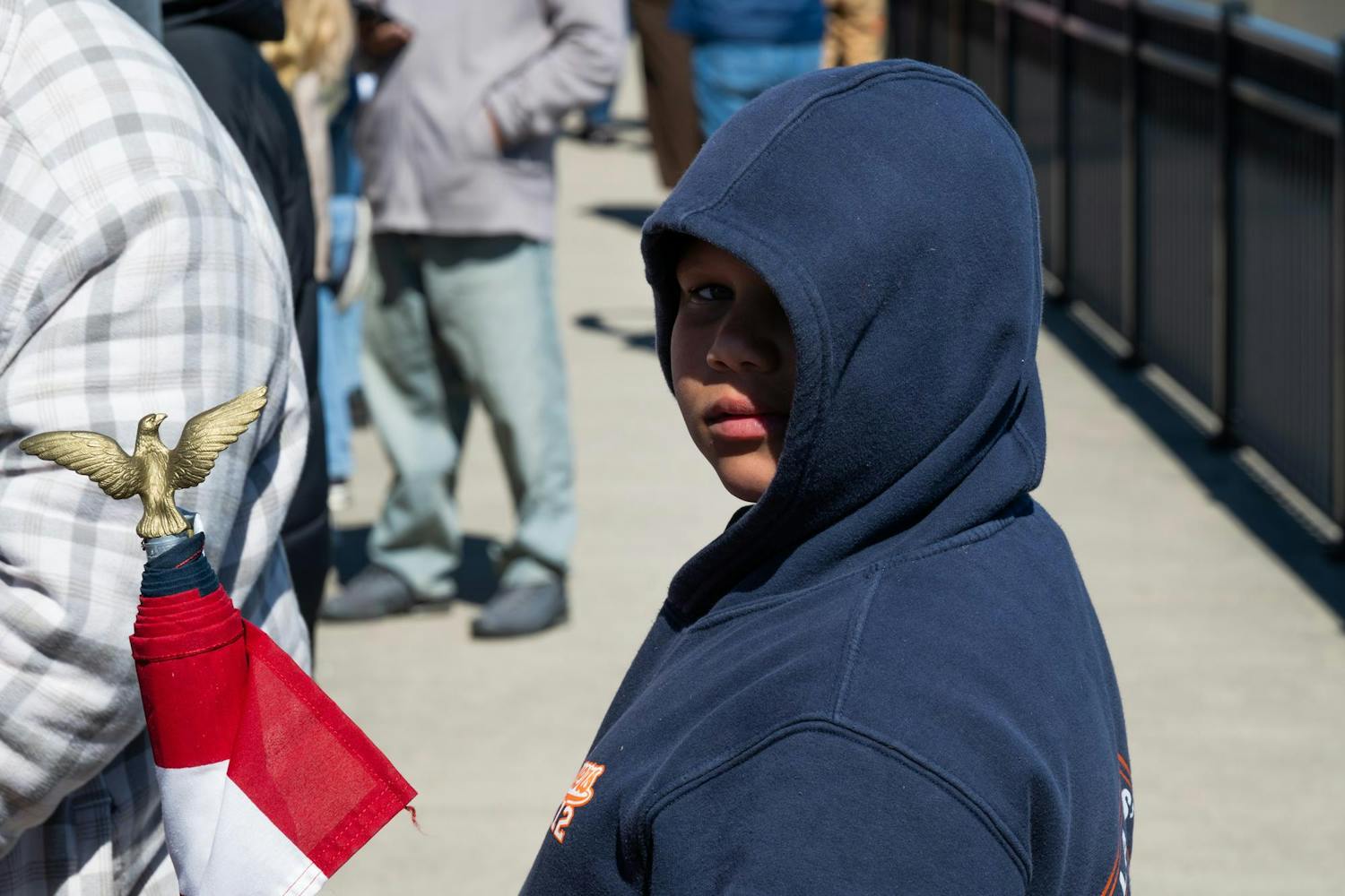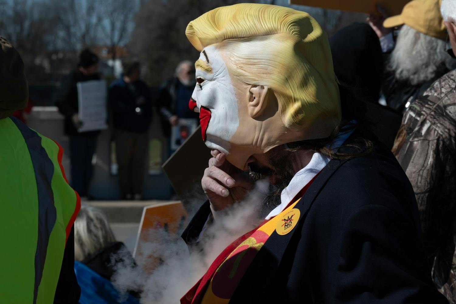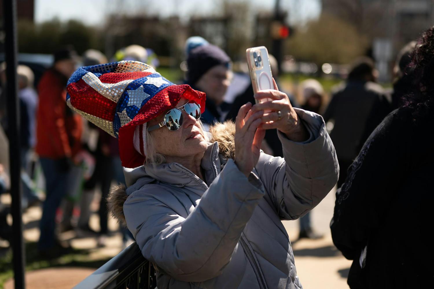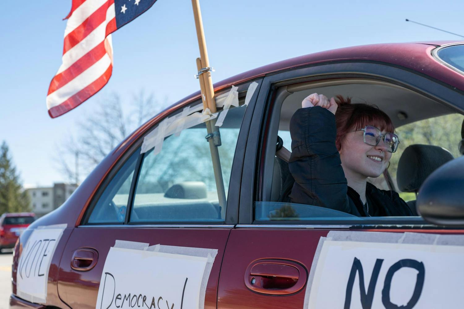 Protesters gathered on the Fallen Heroes Memorial Bridge March 28 for a 'No Kings' protest against the Trump Administration's policies.