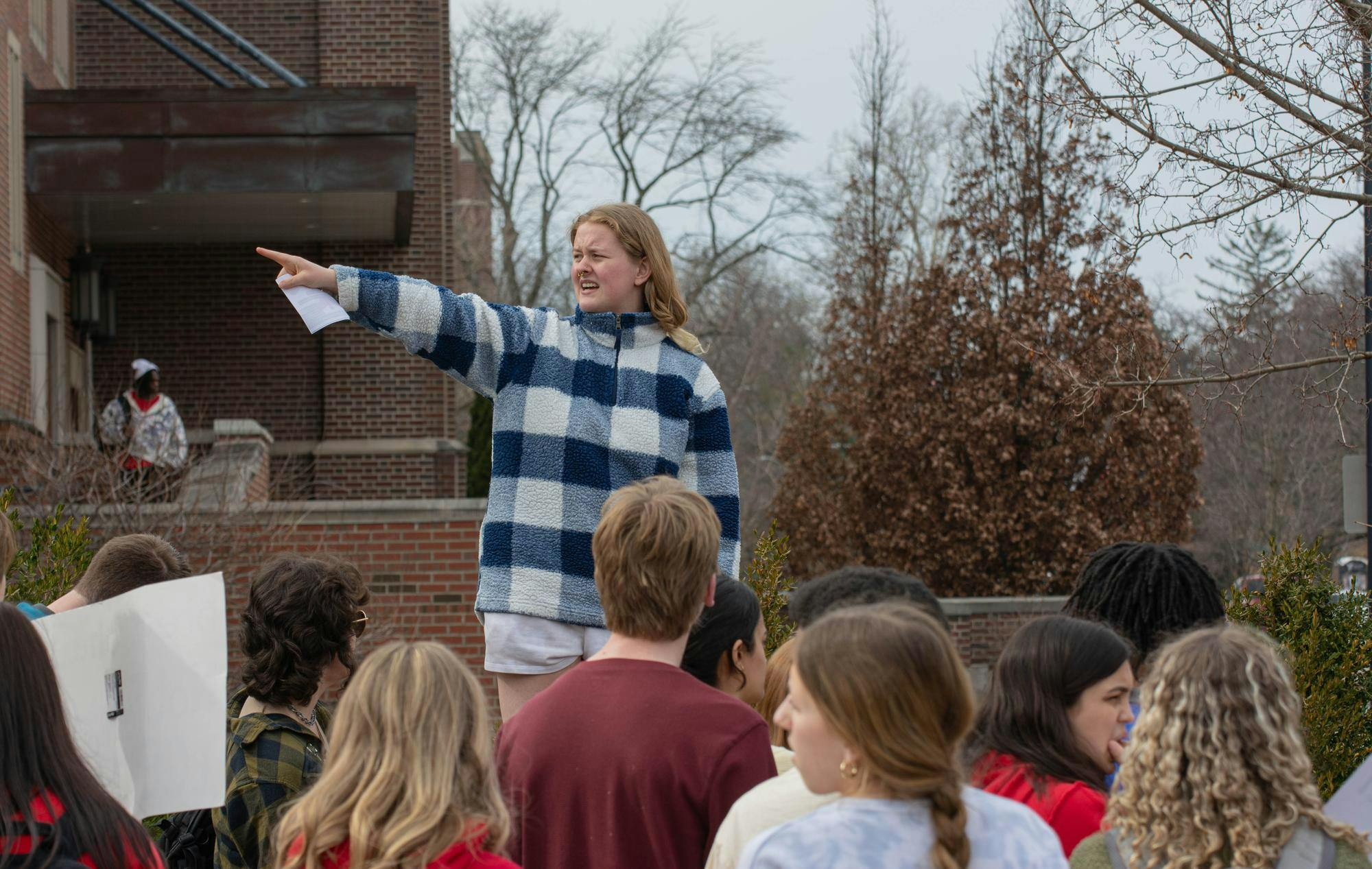 Ball State students gathered at the campus Scramble Light Feb. 17 in support of students facing disciplinary action from university administration.