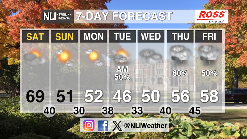 Seven-Day Forecast: A very cloudy week arriving to Muncie as sunshine gradually decreases over the weekend and the first days of the following week. Rain is expected in the morning on Tuesday and potential rain Thursday and Friday.