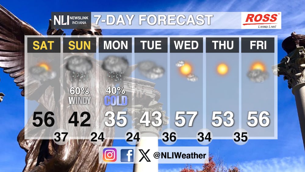 Tomorrow: Early Saturday morning will be our last glimpse of the sun until mid-next week. Clouds will cover the sky for the rest of the day with rainfall moving in around 7 p.m. Prepare for a rainy night accompanied with temperatures dipping into the the high-30s.