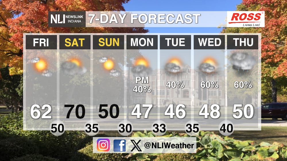 Seven-Day Forecast: Warm temps and sun early this weekend will turn into cooler temperatures on Sunday as a warm front passes through followed quickly by a cold one. Saturday could see some sprinkles in the evening and will be dominated by clouds. Next week will bring a wet pattern of on and off rain and cold temps.