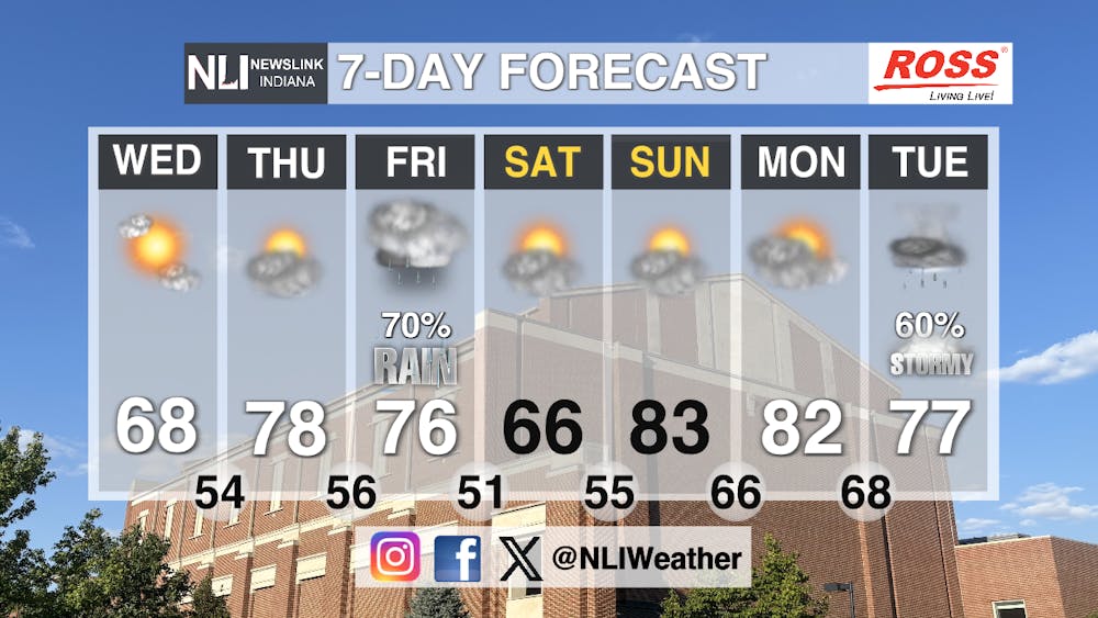 Seven-Day Forecast: 68 degrees on Wednesday being mostly sunny. on Thursday it will be partly cloudy with it being 78 degrees. Friday brings in rain with is being 76 degrees. Saturday 66 degrees with it being partly cloudy. Sunday gets much warmer with it being 83 degrees and partly cloudy. Monday will be mostly cloudy with the temperature being 82 degrees. Tuesday 77 degrees with it being stormy in the afternoon.
