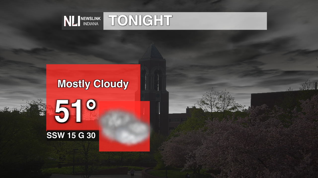 Tonight: Temperatures will remain mild tonight with the low being 40 degrees. Cloud cover will begin to move in throughout the evening with conditions tonight being cloudy. Winds will also be a factor this evening with breezes up to 15 mph.