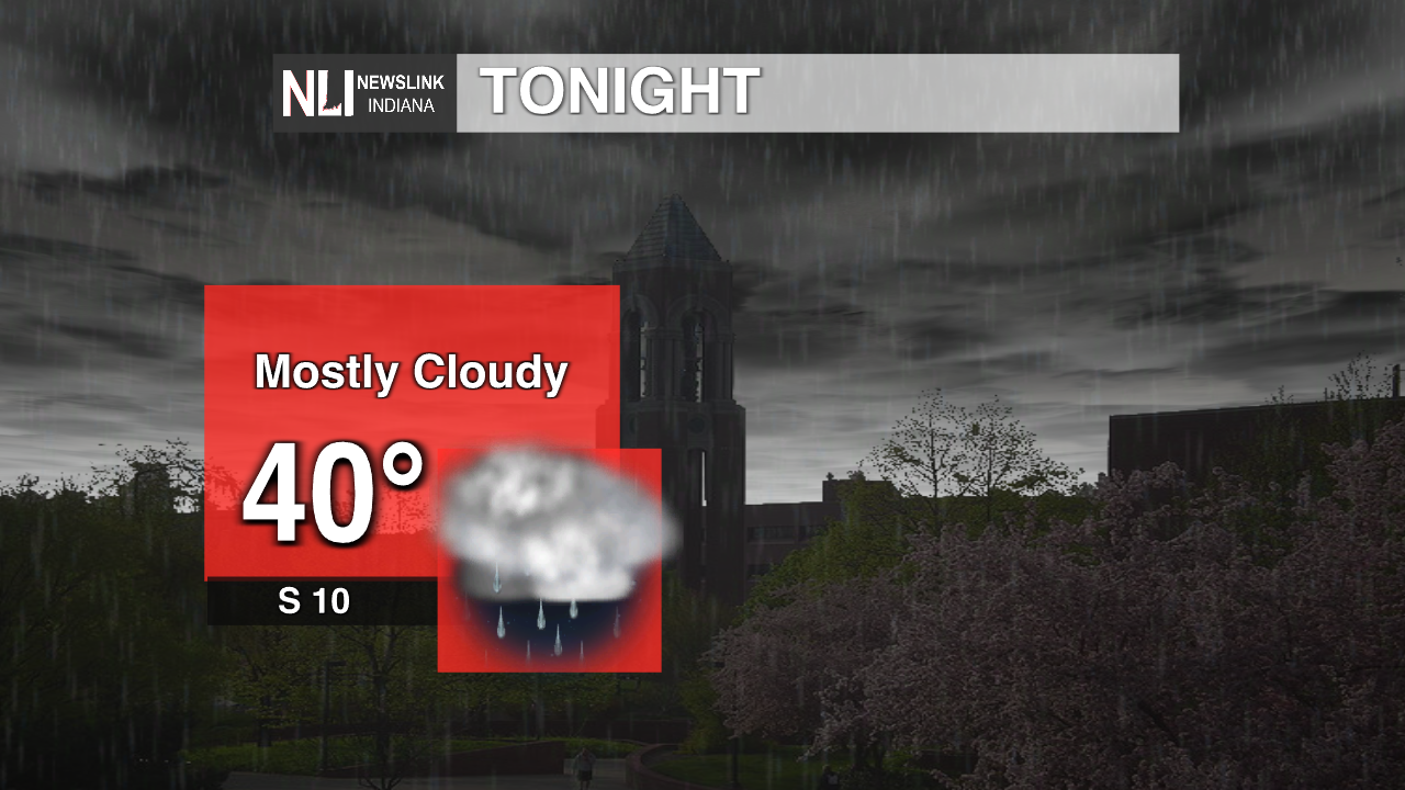 Tonight: There will be thunderstorms that make their way into the area. The low will be 40 degrees with the winds coming from the south at 10 mph.