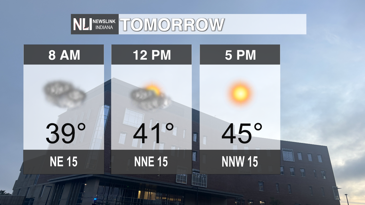 Tomorrow: As you start the commute to work or school, temperatures will remain below freezing at 29 degrees. However, the wind will calm down to 5 mph in the early morning. Temperatures will quickly rise and the cloud cover will move away giving sunny conditions at noon with temperatures in the mid-to-low 40s. Clouds will move back in through the afternoon as the temperature increases to the high of 53 for the day.