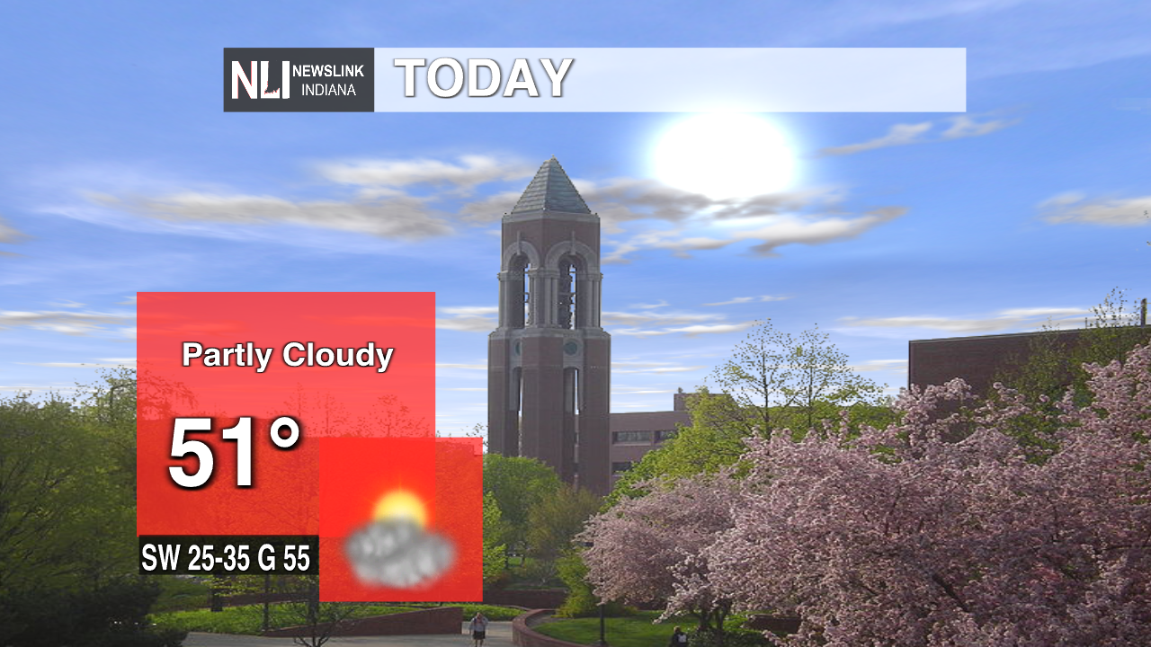 Today: Winds will slowly pick up throughout the day with a high of 53 degrees. The sun will shine throughout the day with clouds moving in later tonight.