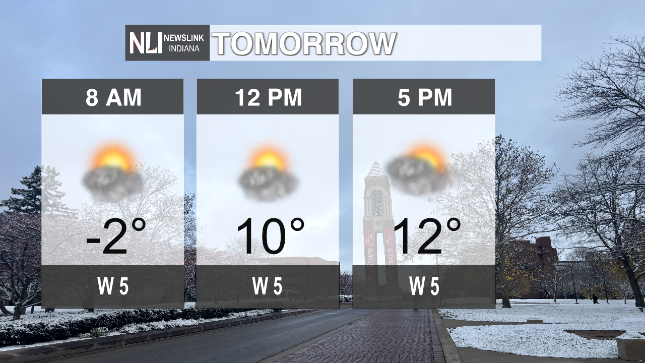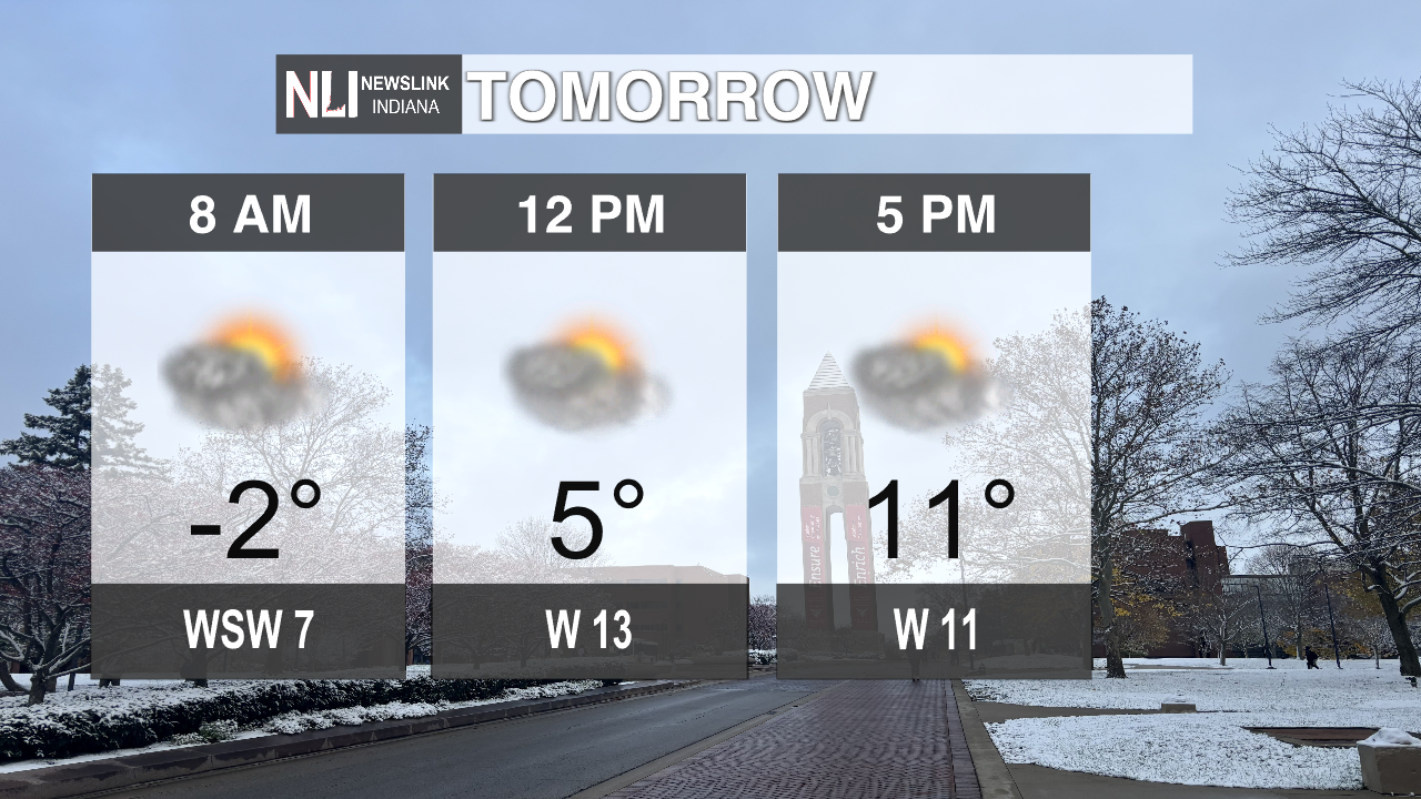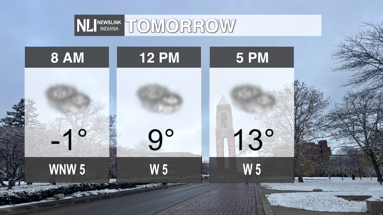 Tomorrow: It won't get above zero degrees until after 8 a.m. and only get up to about 13 degrees at 5 p.m. Overcast skies will make it gray and gloomy all throughout tomorrow.