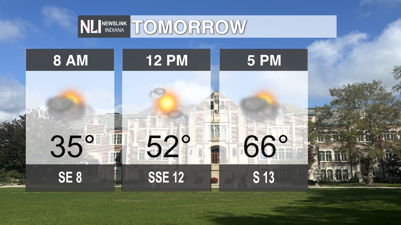 Tomorrow: Freeze warning still in effect as you head out the door in the morning. Lingering clouds all throughout the day but temperatures are on the rise. Starting the morning with 36 degrees then by 5 p.m. warming up to 66 degrees. Winds trending breezier as Thursday will be breezy.