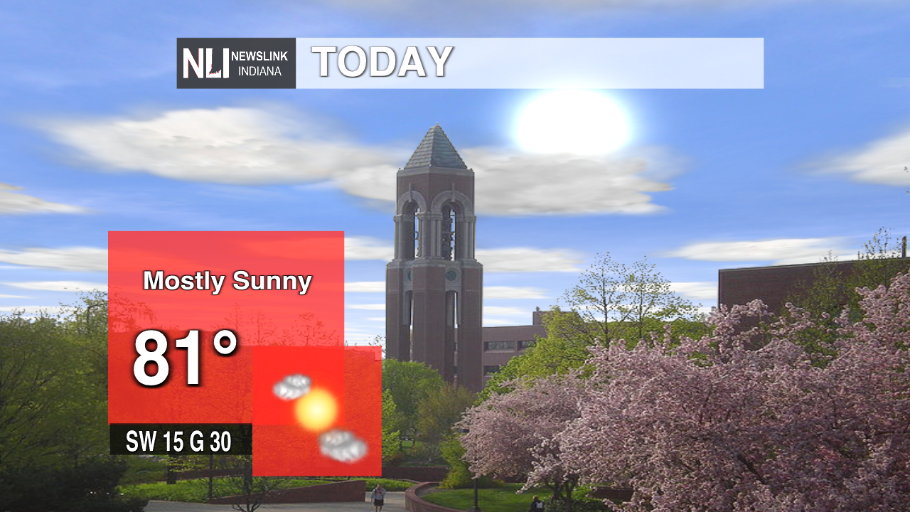Today: The winds will be coming from the southwest at 15 mph with gusts reaching up to 30 mph. It will be mostly sunny today with a few lingering clouds. The high will be 81 degrees, however the temperature will slowly drop throughout the day with the winds slowly picking up.