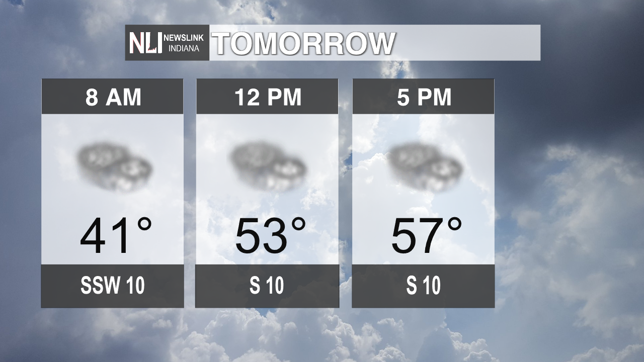 Tomorrow: Conditions will remain cloudy throughout the day continuing from the night before. However, temperatures will remain mild with temperatures being 41 degrees as you start your commute. The temperatures will increase up to 57 degrees for the high tomorrow.