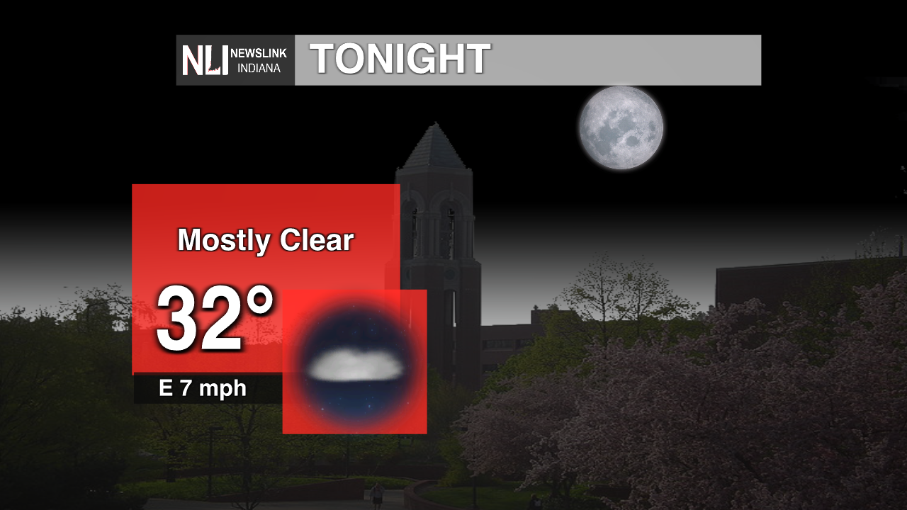 Tonight: Hopefully you haven't planted those spring flowers, because below freezing temperatures this evening bring a freeze warning into effect from 11 p.m. to 9 a.m. Wednesday morning. Conditions with be mostly clear this evening and winds coming in from the east at 7 mph.