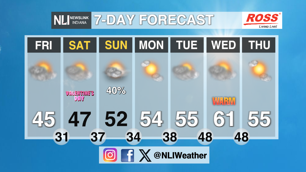 <![CDATA[GALLERY: Ball State Mens Volleyball vs. McKendree]]> <![CDATA[Trending warmer for Valentine's weekend]]>