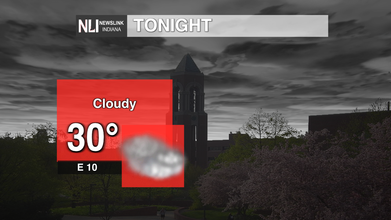 Tonight: We will be seeing clouds move in with it being 30 degrees with winds coming from the east direction at 10 mph and it being below freezing, so if you are planning to go out for dinner bring a coat and warm pants.