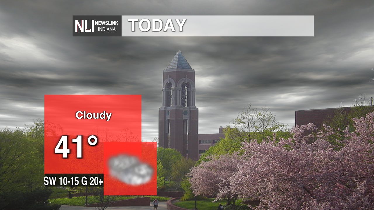 Today: Expect cloudy and breezy conditions in the early to mid-afternoon. Winds will sit around 10-15 mph out of the Southwest with gusts potentially over 20. Today won't be as cold as yesterday, with a high of 41 degrees.