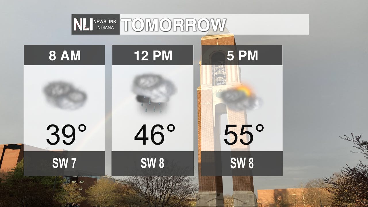 Tomorrow: We will be getting away from those chilly temperatures we have been feeling the past few days and the high will get in the low 60s. There will be clouds present throughout the morning, along with a few midday showers, but they will start to clear out getting into the early afternoon.