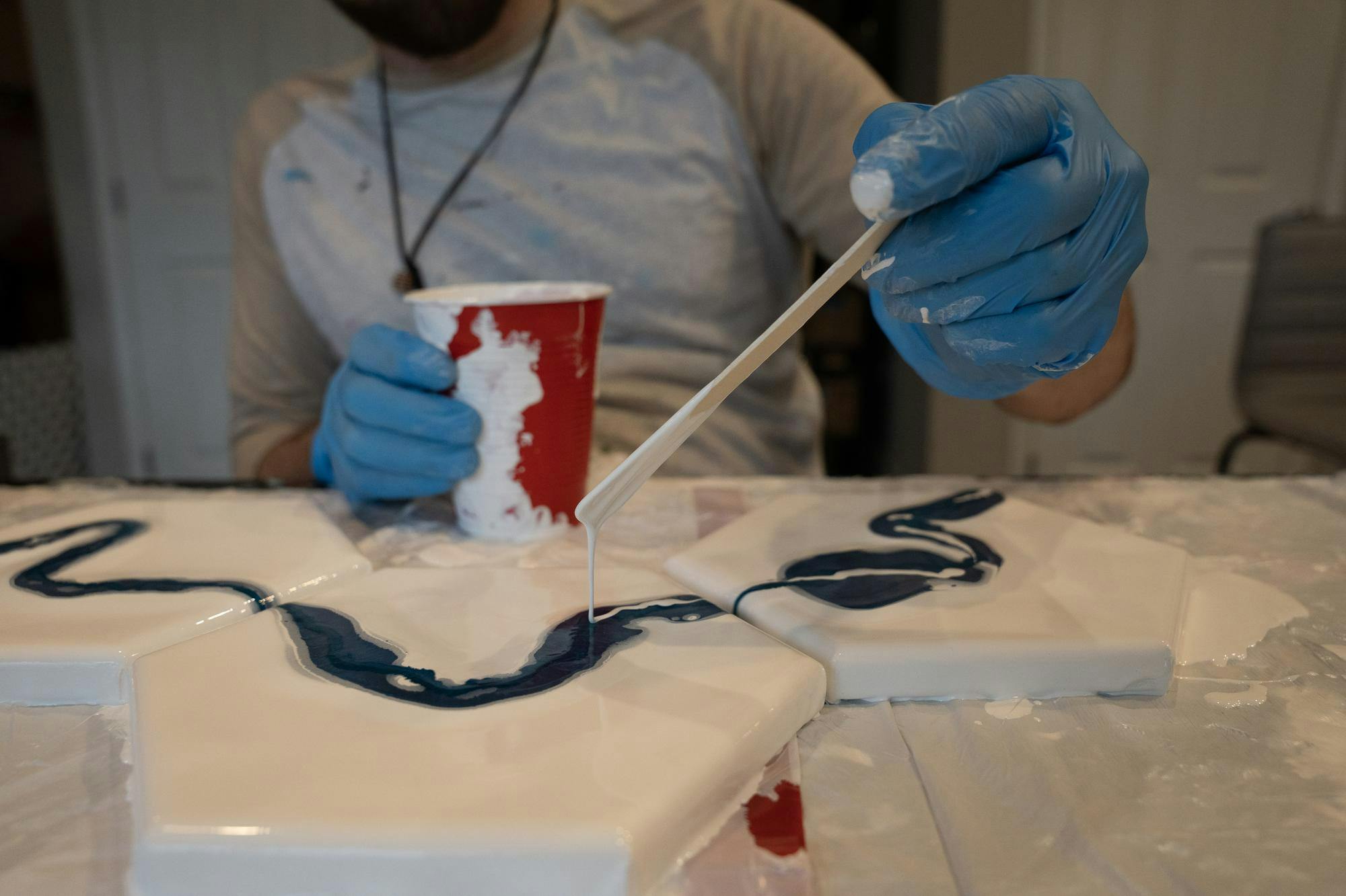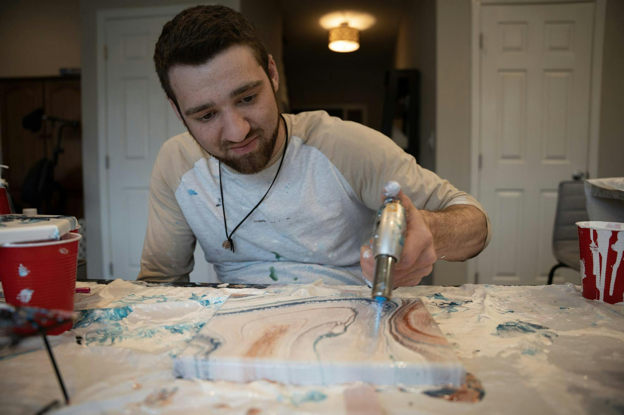 Austin said what draws him specifically to the acrylic pour medium is its abstract nature that reminds him of "the beauty of the absurd," a strong parallel to the fact that he likely would never have discovered his artistic talent without his 2020 wreckage.