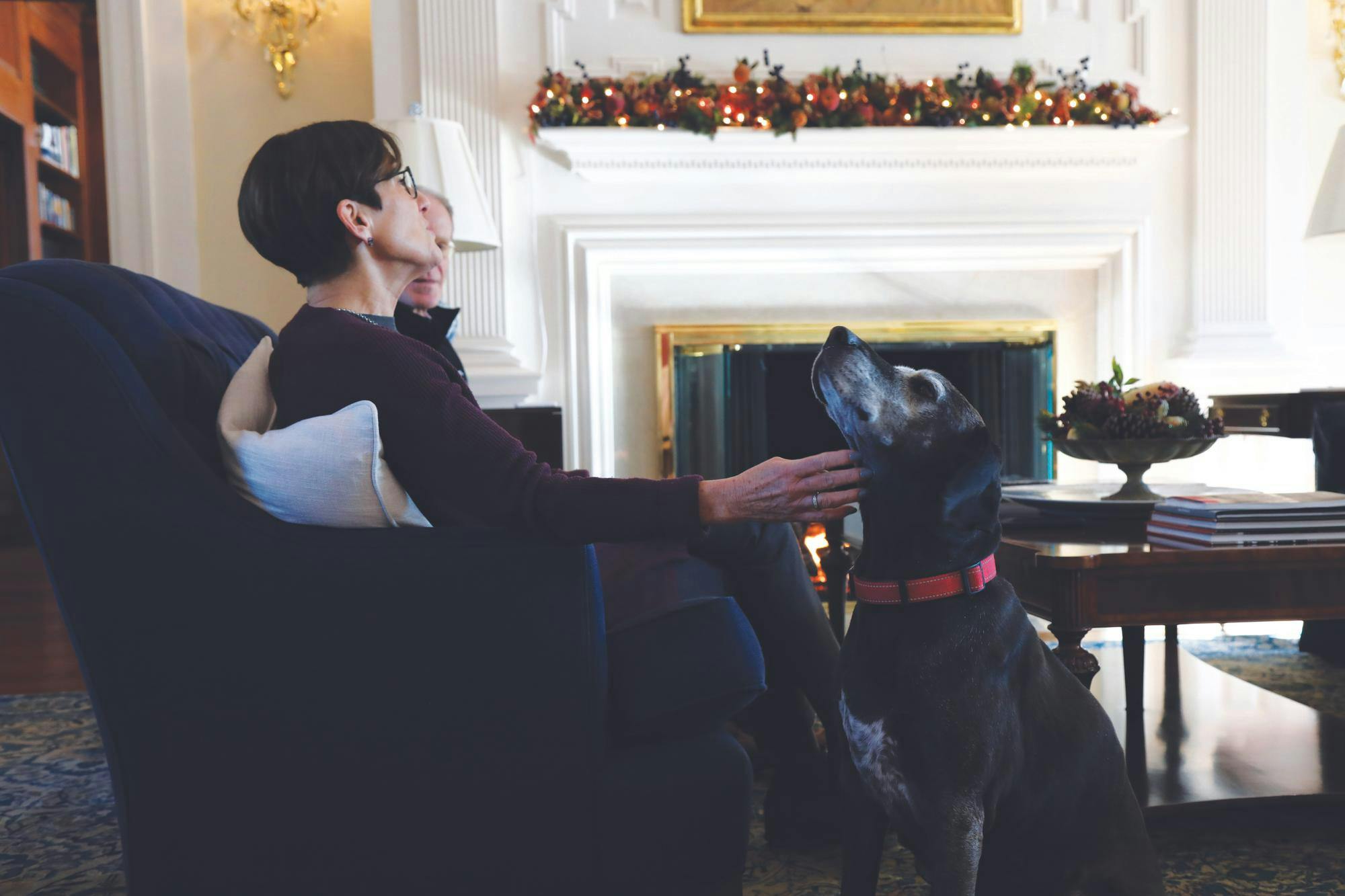 Cadi has always been very gentle and polite with guests at home. She is a fan favorite, especially during large events hosted at Bracken House. Geoffrey and Jennifer said people always ask to meet Cadi. The dog has gotten on the caterer's good side and has a reputation for stealing treats from the large industrial kitchen on Bracken's first floor.