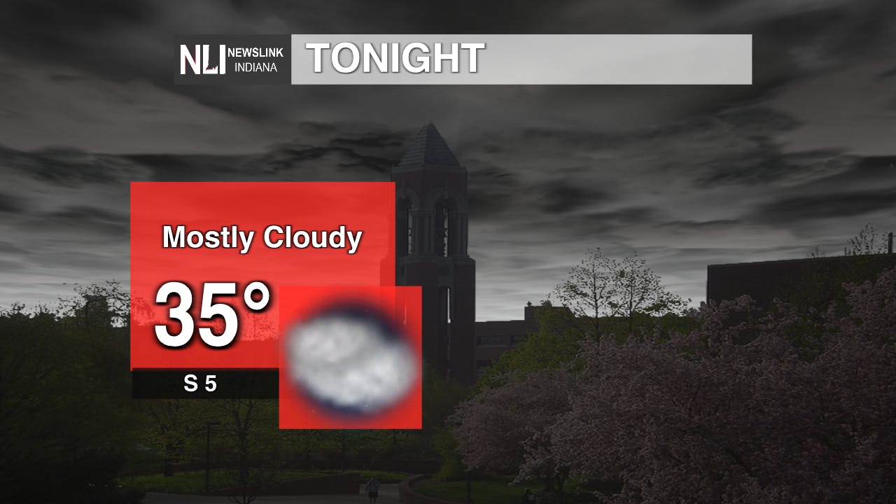 Tonight: The winds will gradually weaken as we head into the overnight, but cloudy conditions will remain. Tonight's low is 35 degrees with a slight breeze out of the south of around 5 mph.