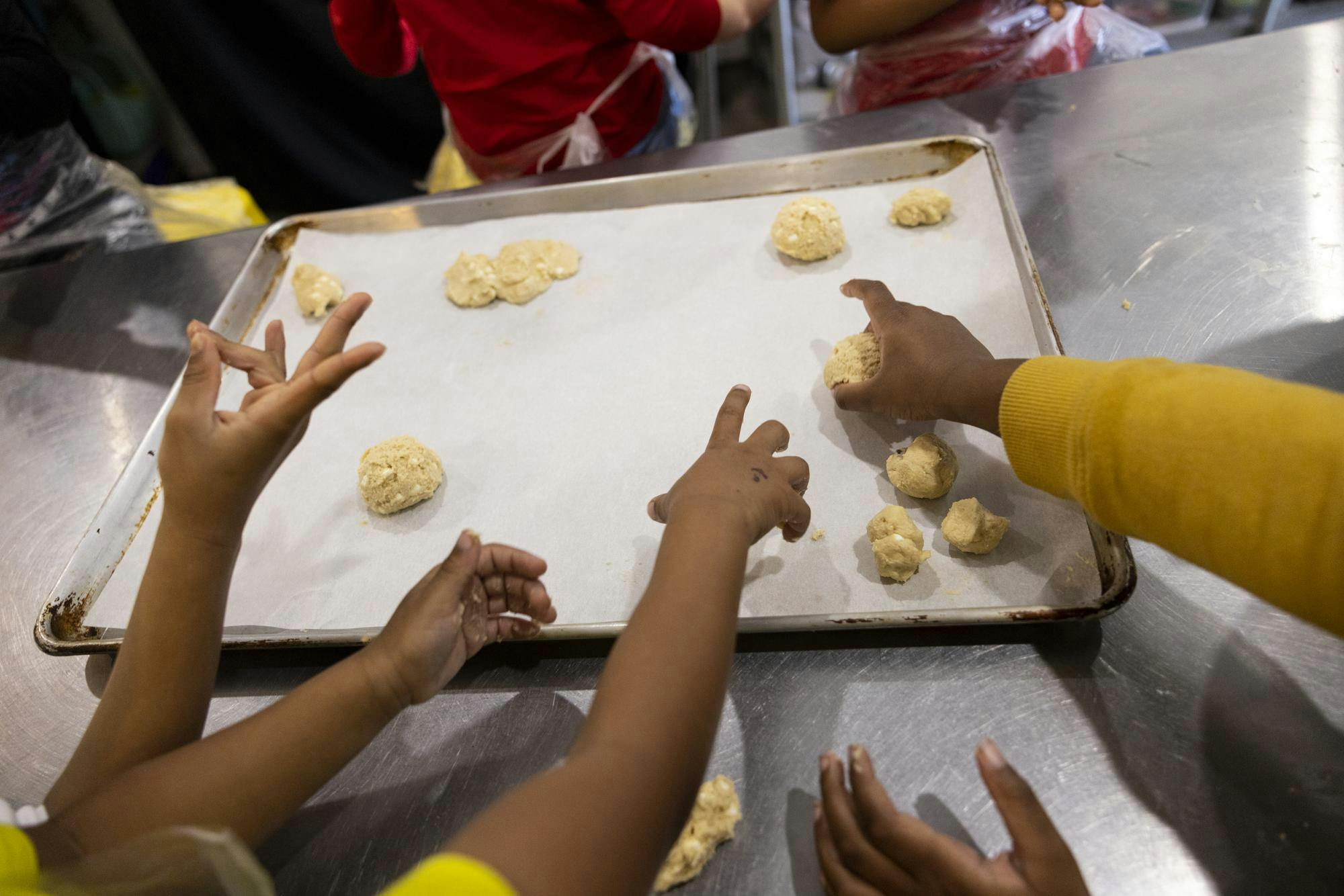 1. Preheat the oven to 350˚F. Line 2 baking sheets with parchment paper. Combine the cake mix, melted butter and eggs in a stand mixer fitted with the paddle attachment on medium speed until well combined, about 30 seconds.