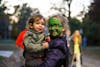 Muncie local runs back to her family after getting candy while trick or treating Oct. 31 in Muncie Ind. ...