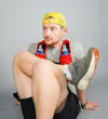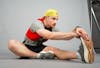 Ball State senior Isaac Rogers poses for a photo stretching with his gear he uses during races Nov. ...