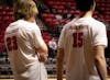 Junior Men's Volleyball players Peter Zurawski and Marty Canavan watch their team on the sidelines Feb. ...