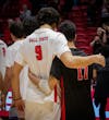 Ball State Men's Volleyball team celebrate on the sidelines Feb. 26. Ball State won against Tusculum ...