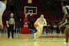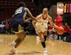 Ball State junior Karsyn Norman drives the ball down the court Feb. 25 at Worthen Arena. Norman has ...