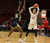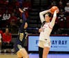 Senior Tessa Towers shoots a 2-pointer Feb. 25 at Worthen Arena. Towers led the team with 19 points. ...