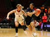 Freshman Giorgia Gorini drives the ball down the court Feb. 25 at Worthen Arena. Gorini had 3 assists. ...